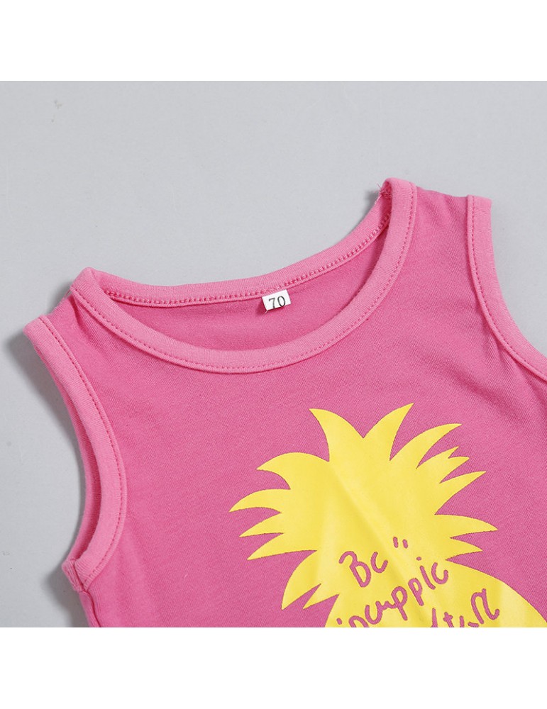 Pineapple Print Baby Girls T-shirt Shorts Sets For 0-2Years