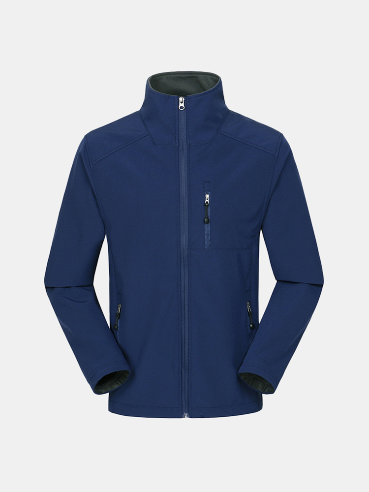 Mens Outdoor Soft Shell Thermal Fleece Lining Windproof Zipper Up Sport Jacket