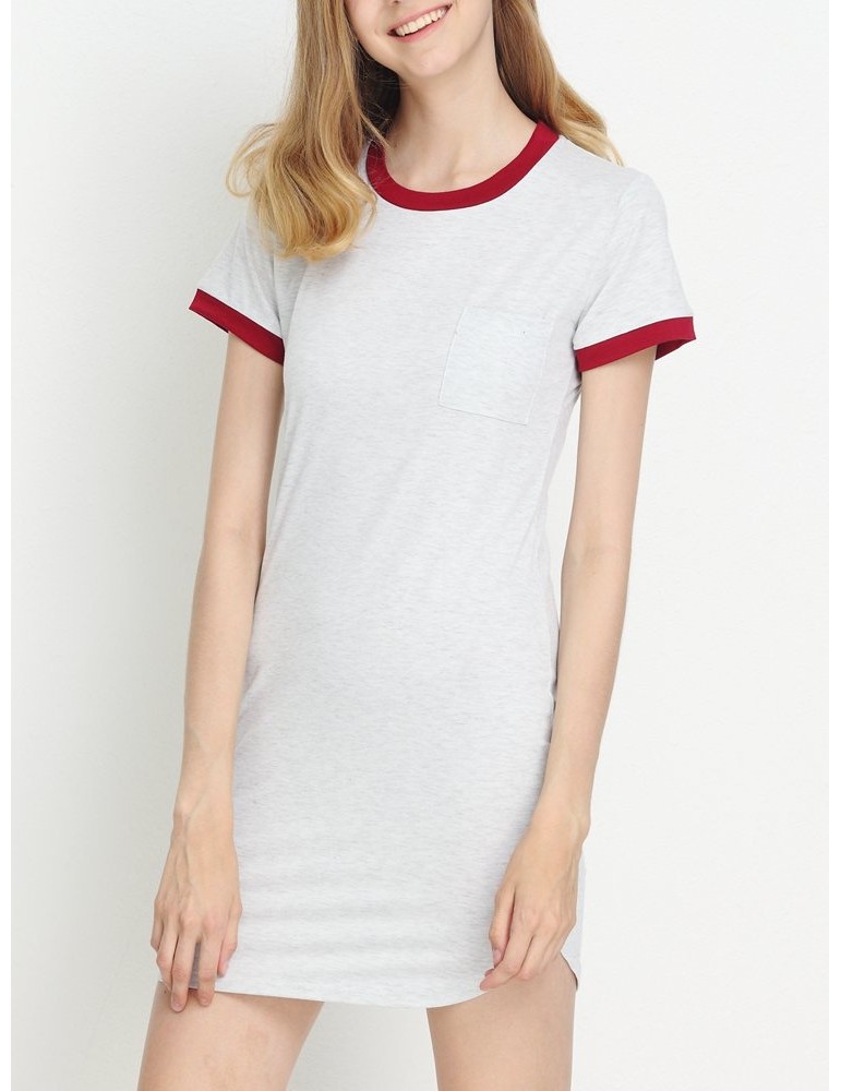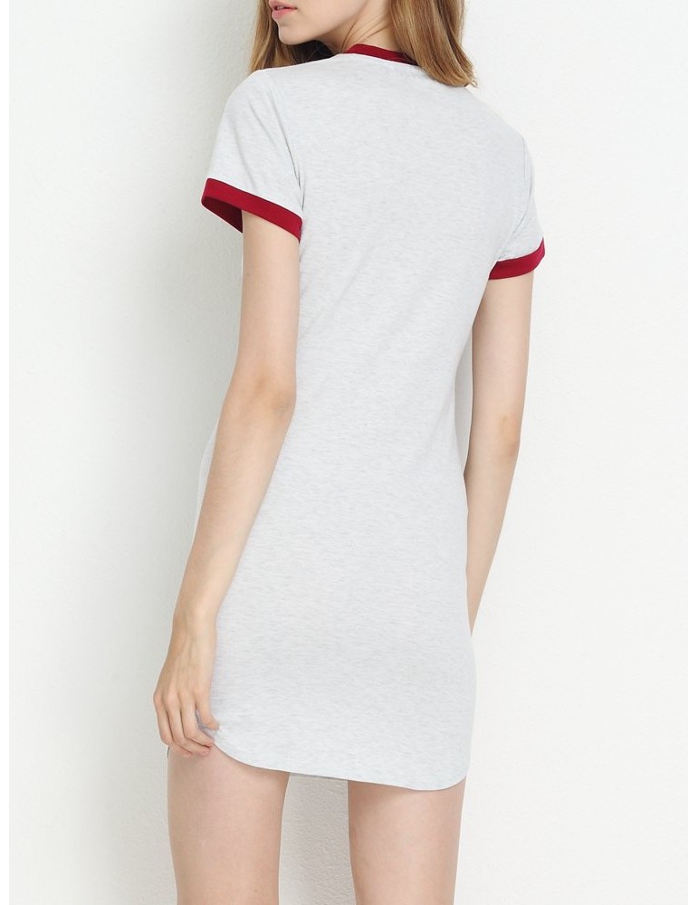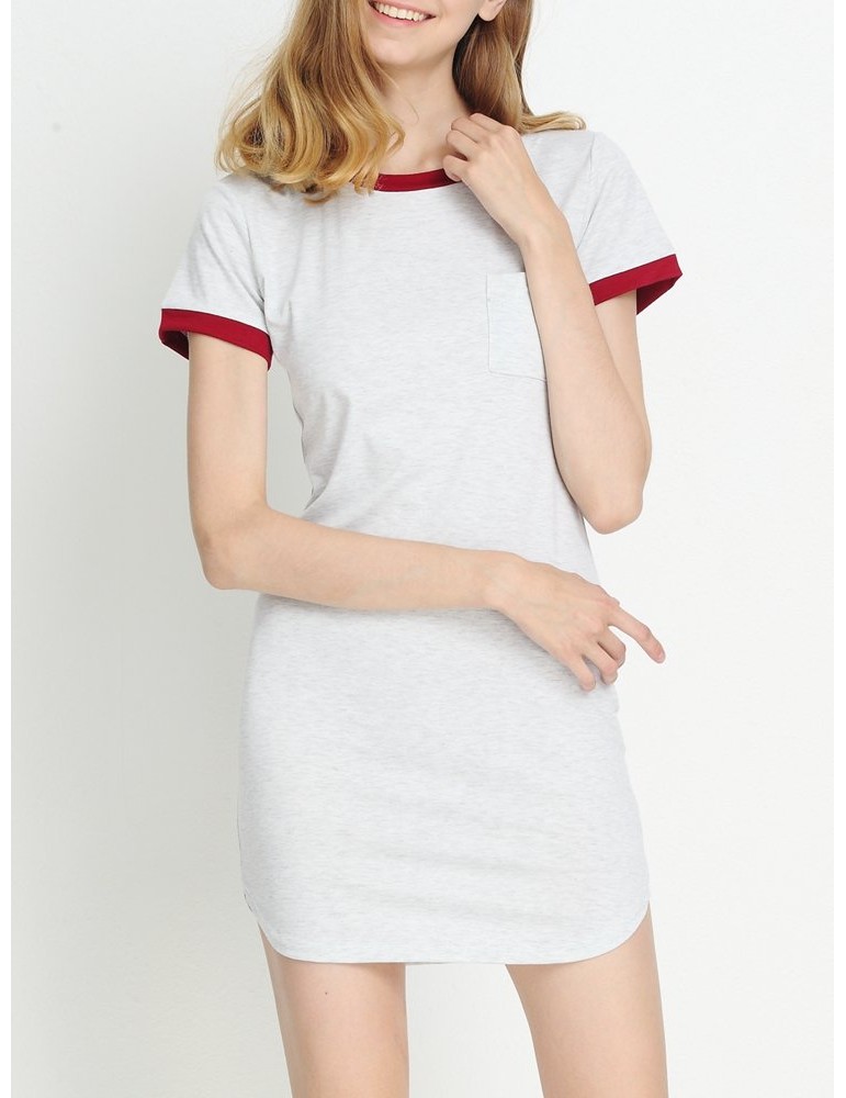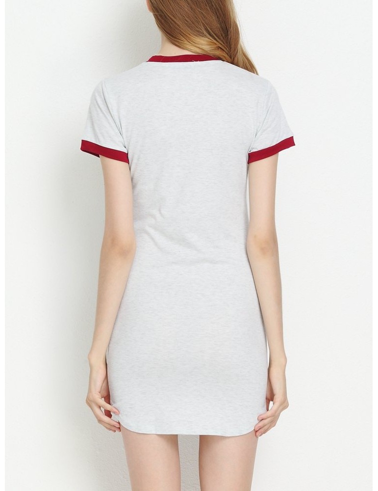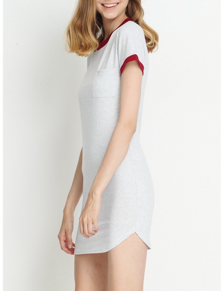Casual Patchwork Split Short Sleeve O-neck Mini Dress For Women