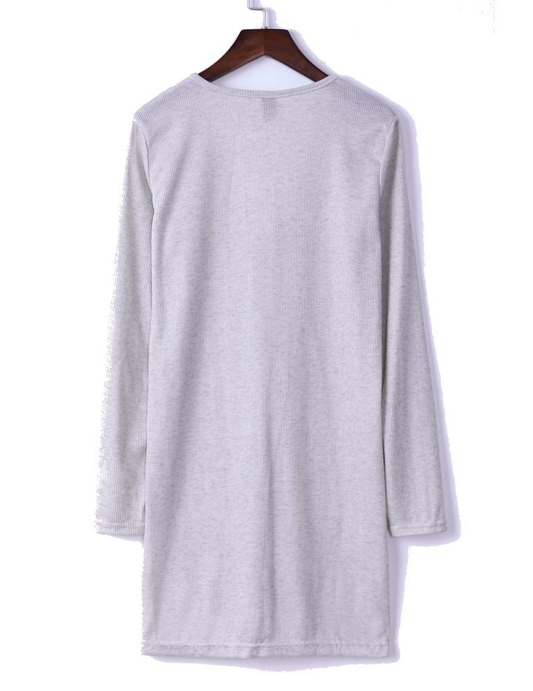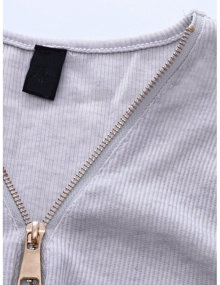 Women Sexy Zipper Bodycon Long Sleeve V-neck Mini Dress