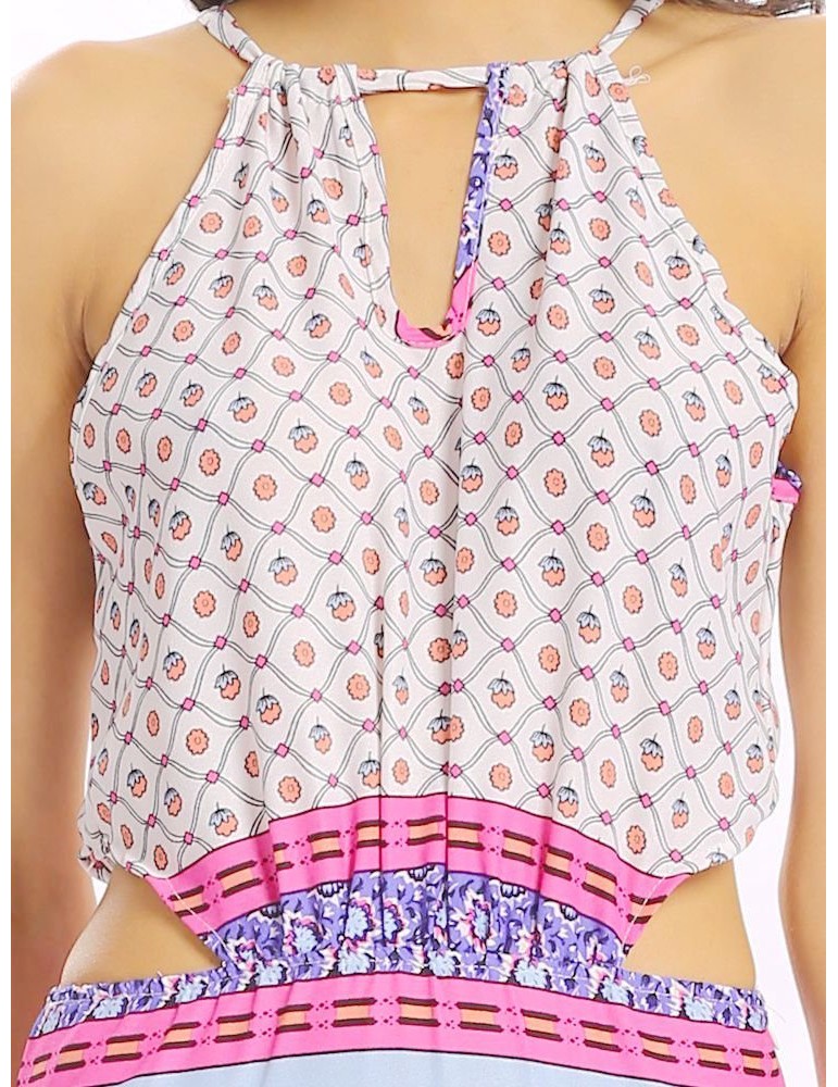 Women Sexy Printing Halter Hollow Bandage Spaghetti Strap Mini Dress