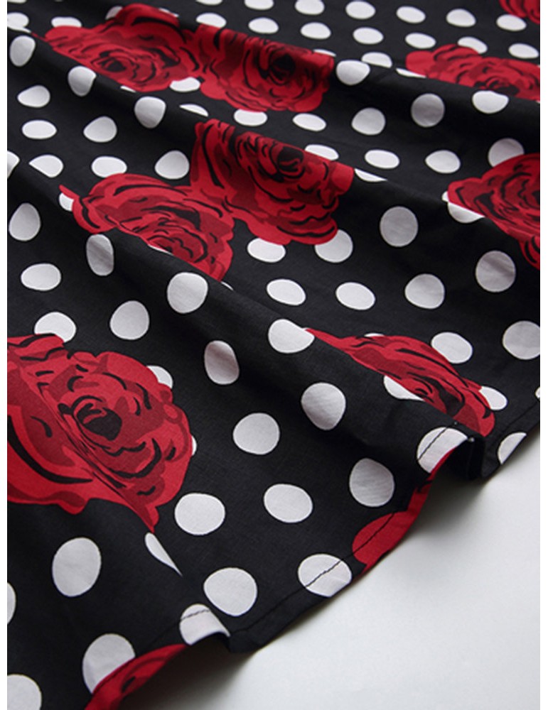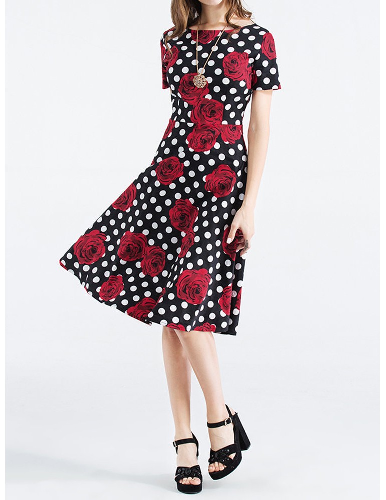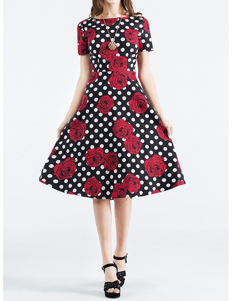 Vintage Women Polka Dots Floral Printed Hepburn Style Dresses