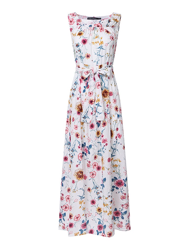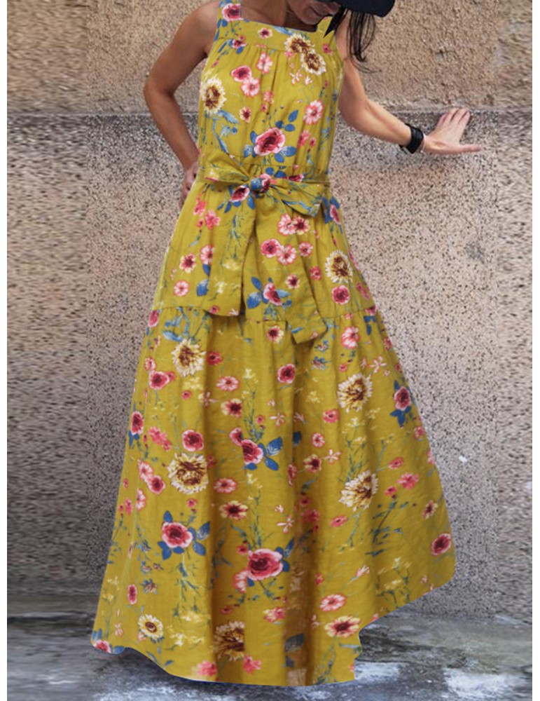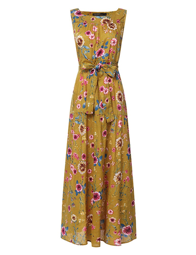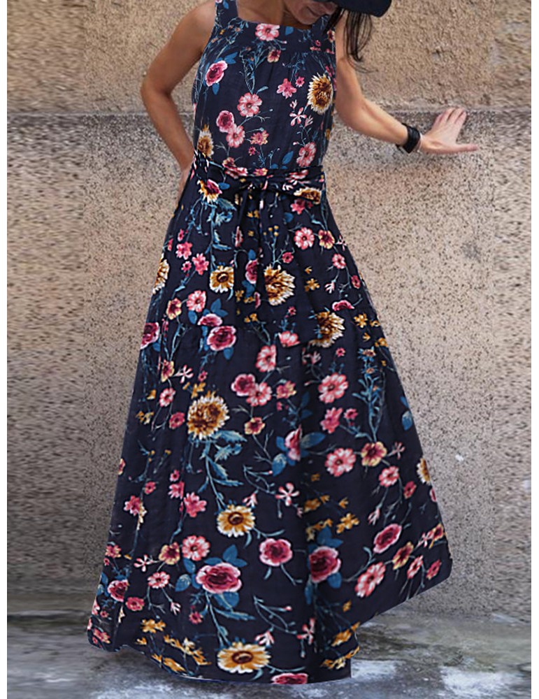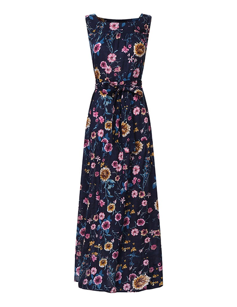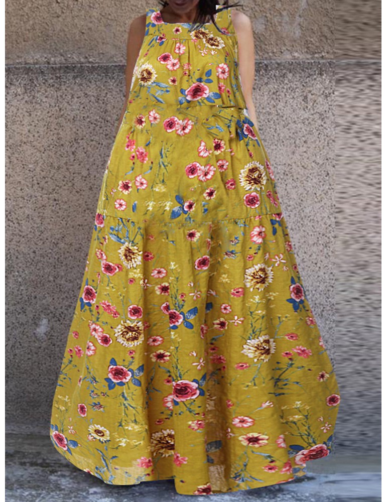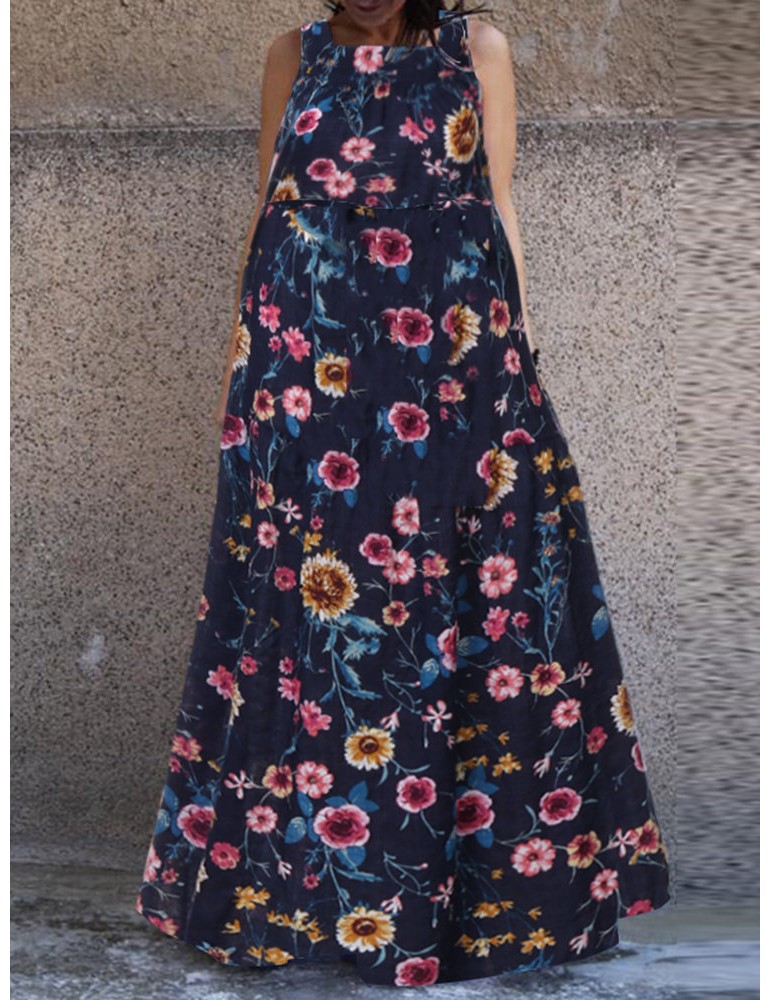 Vintage Sleeveless Floral Overhead Maxi Dress