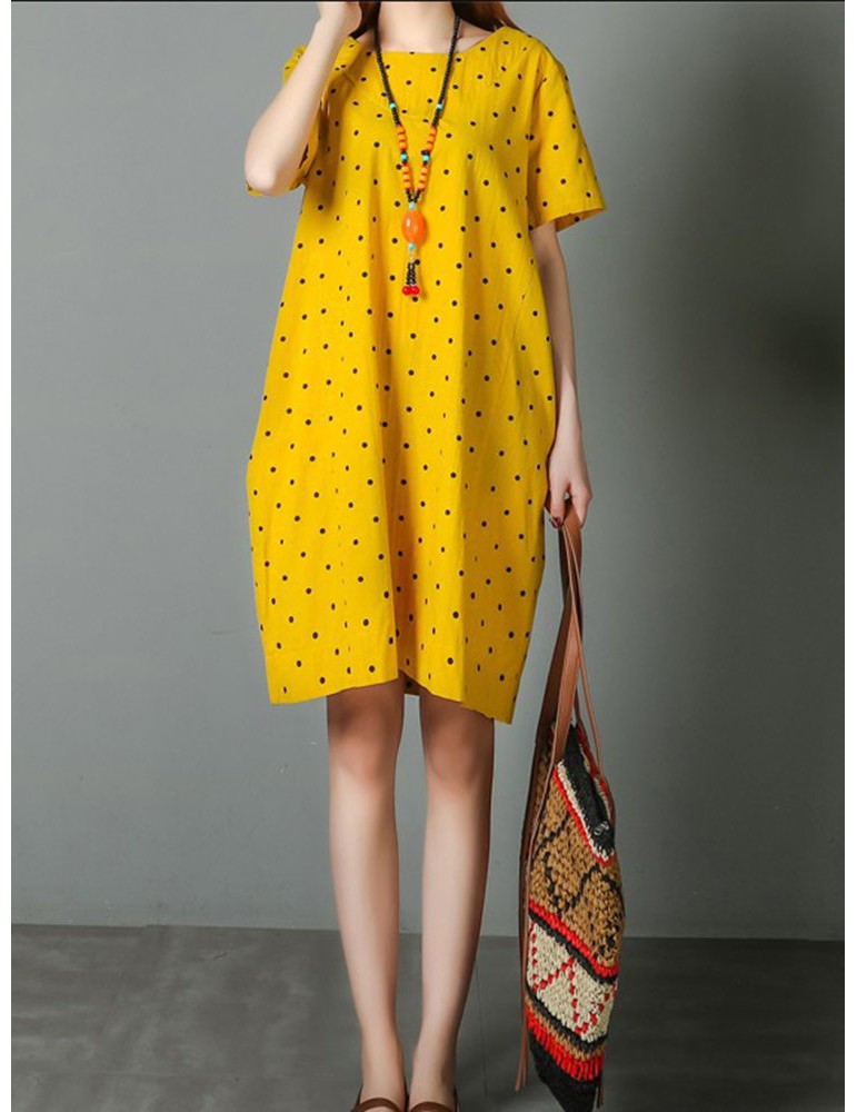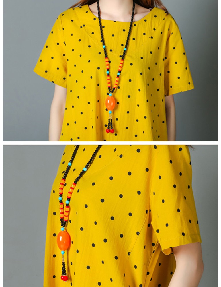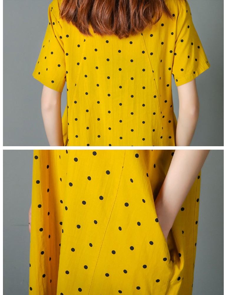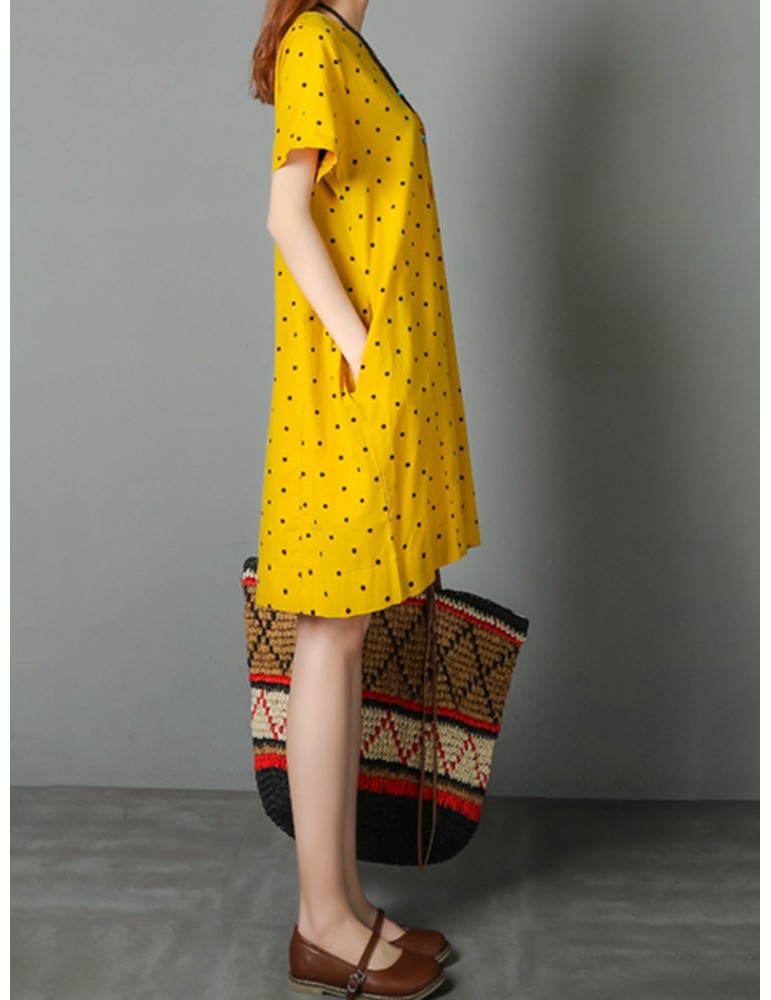 Loose Polka Dot Print Pockets Short Sleeve Vintage Dresses