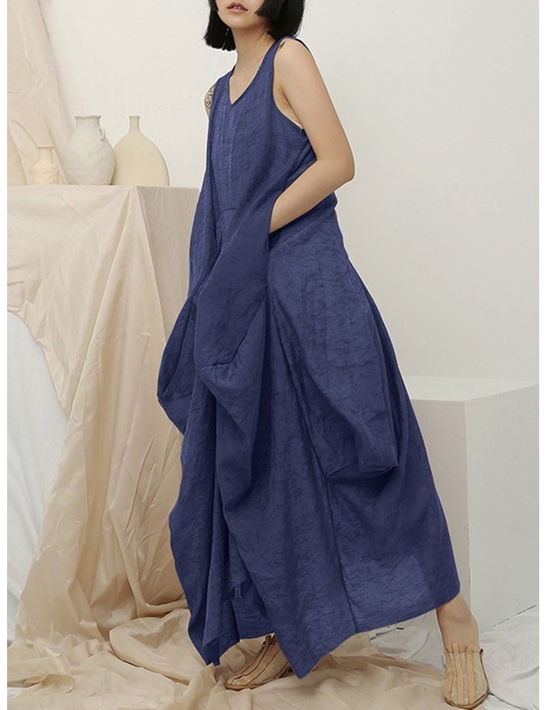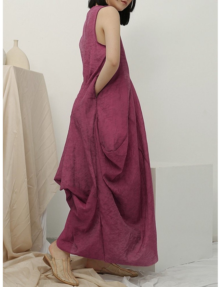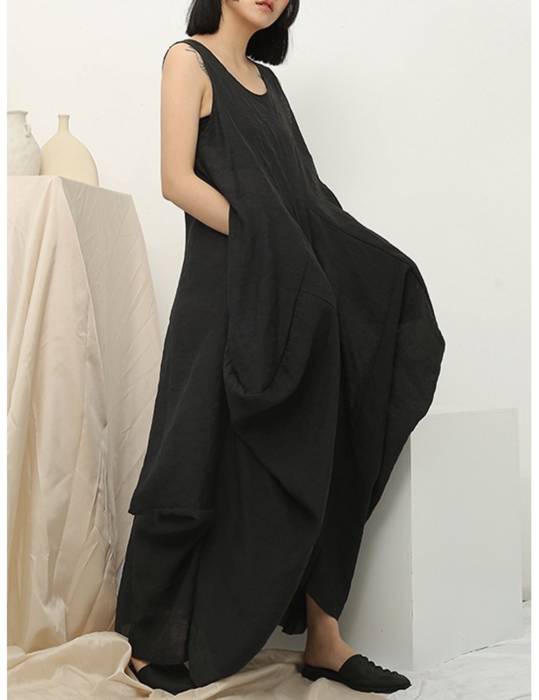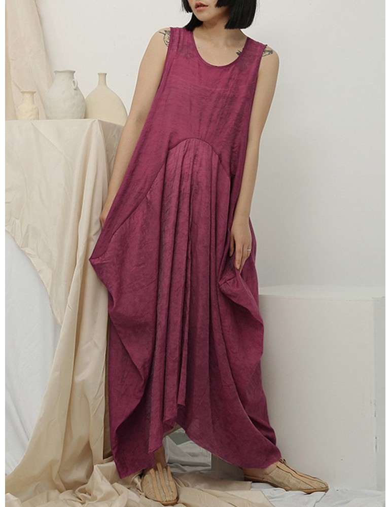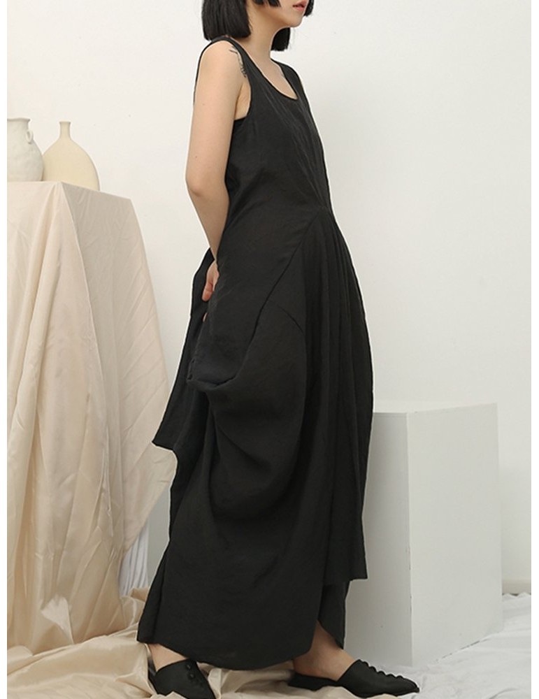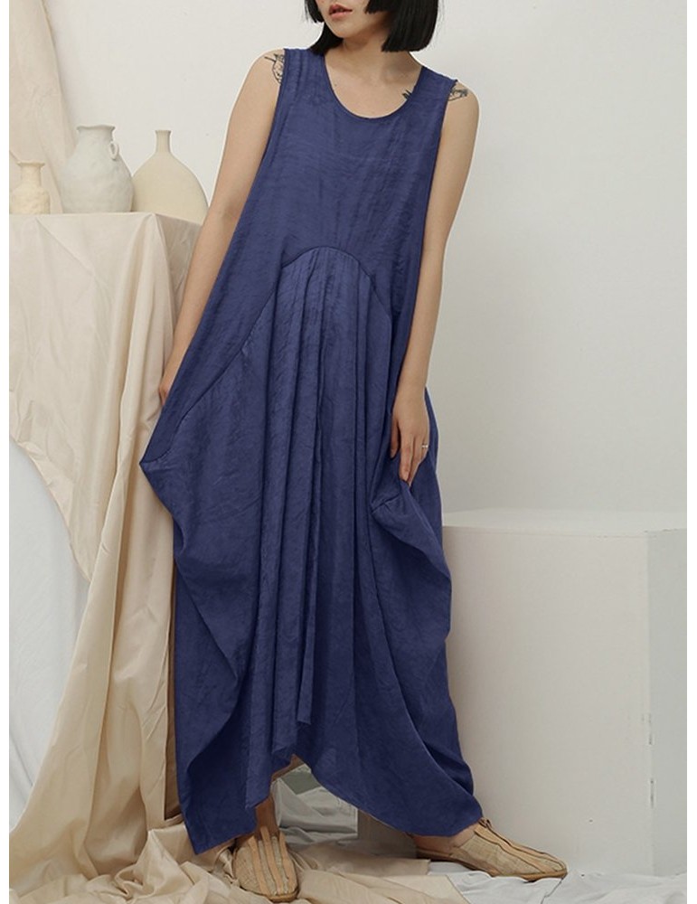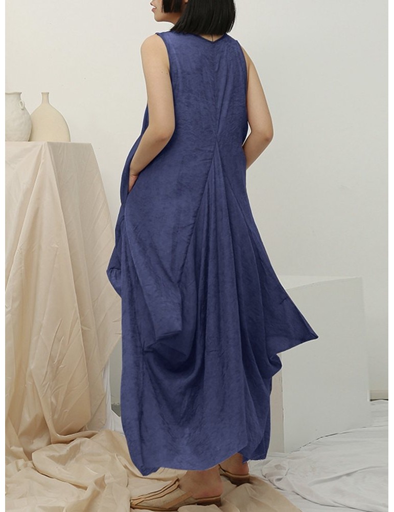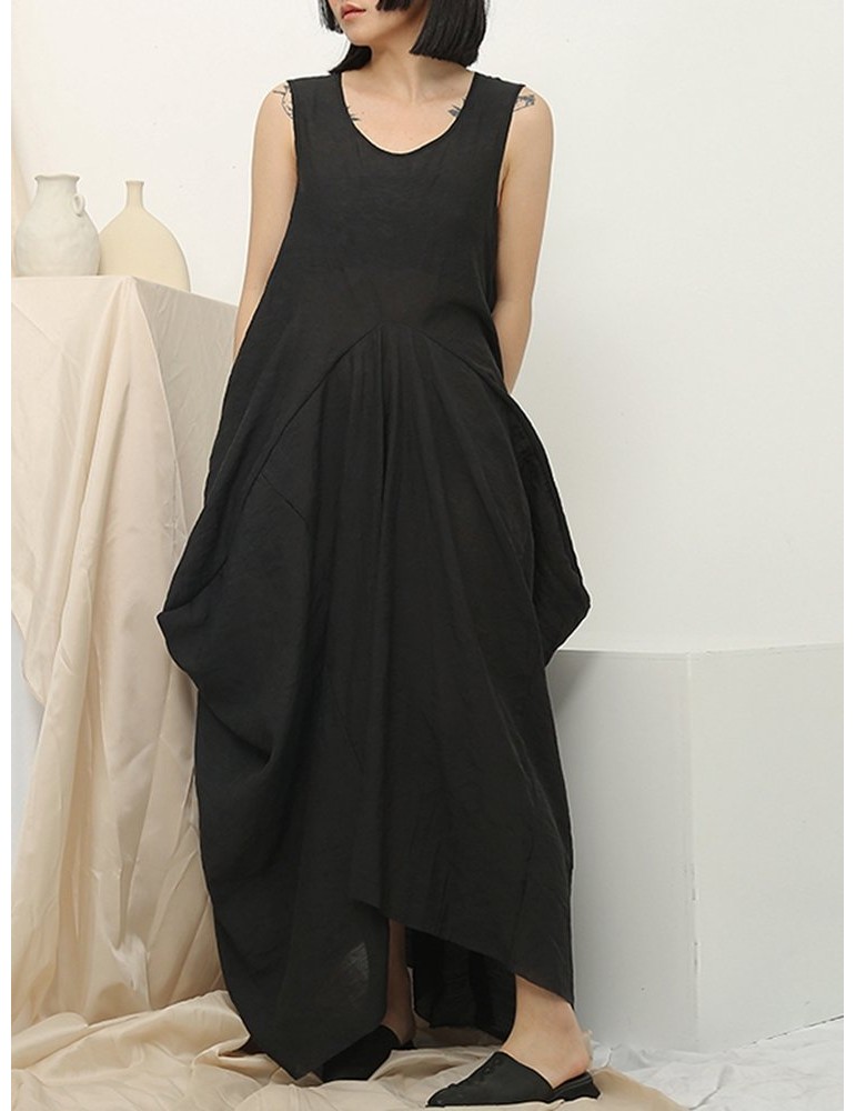 Irregular Sleeveless Solid Color Vintage Dress For Women