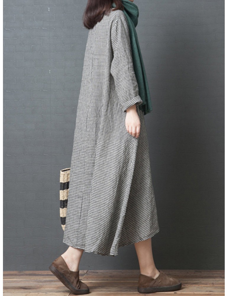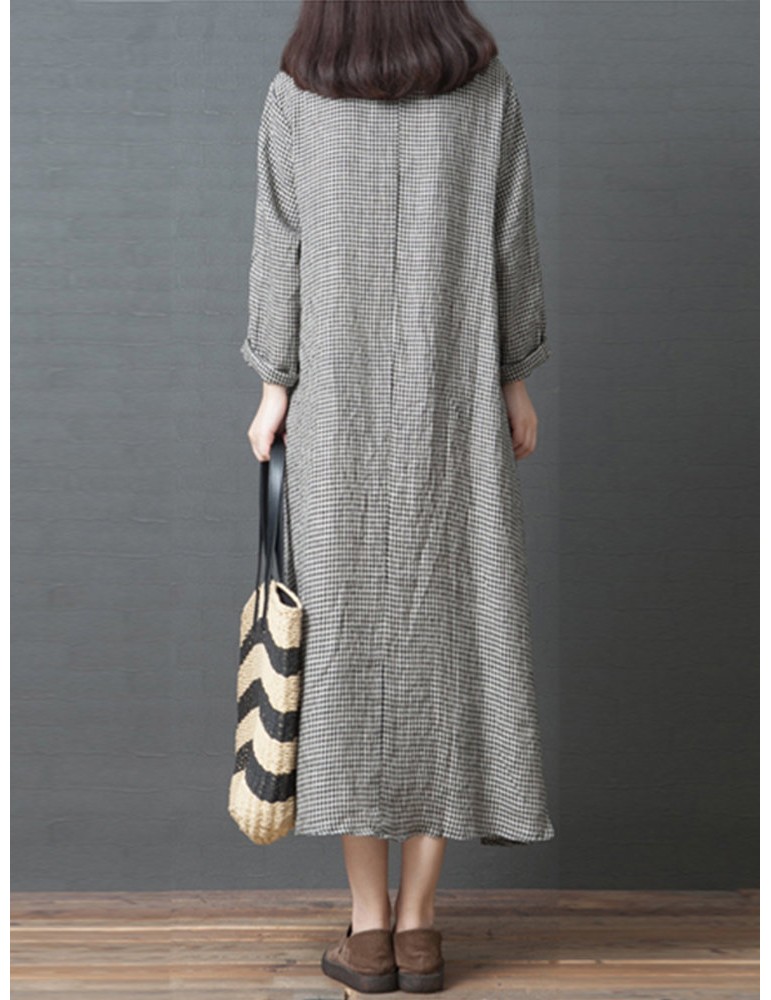 Vintage Plaid Patchwork Square Collar Dress
