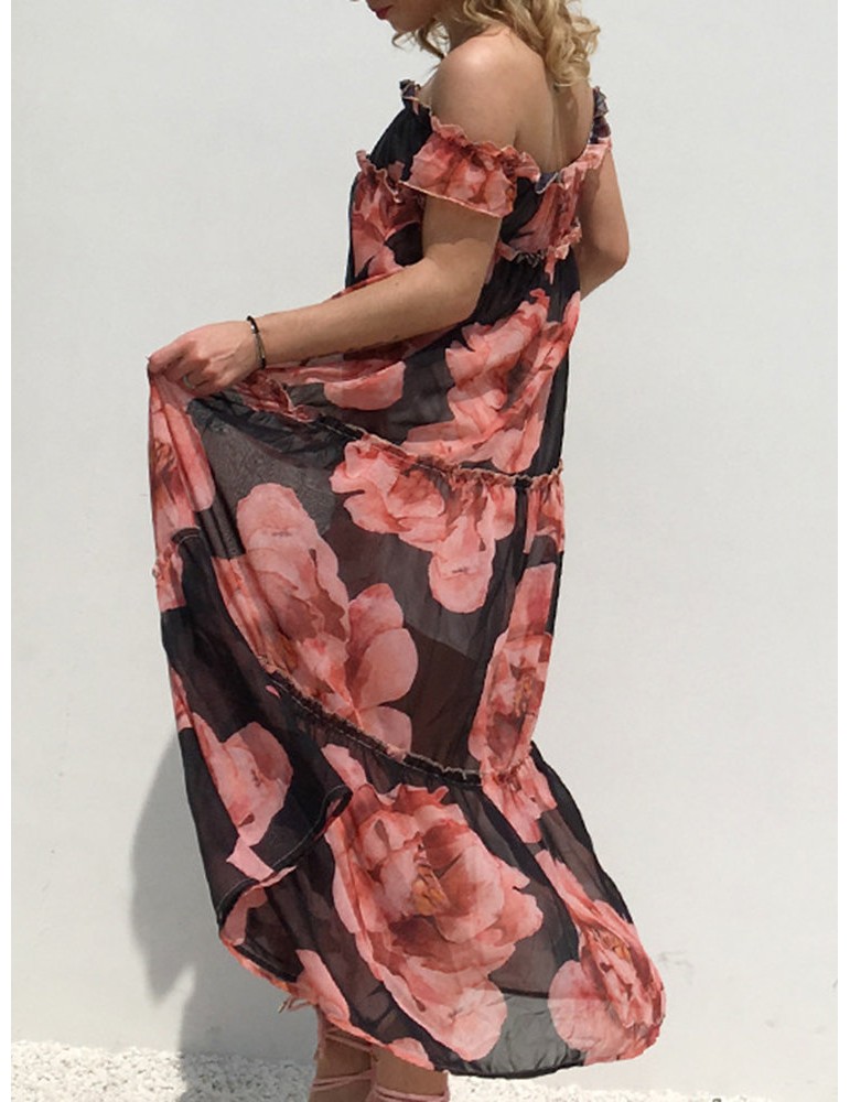 Bohemian Floral Print Off-shoulder Maxi Dress For Women