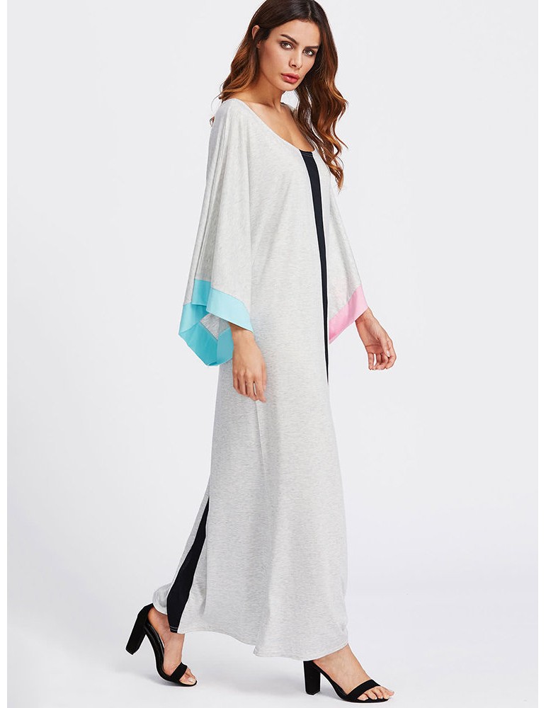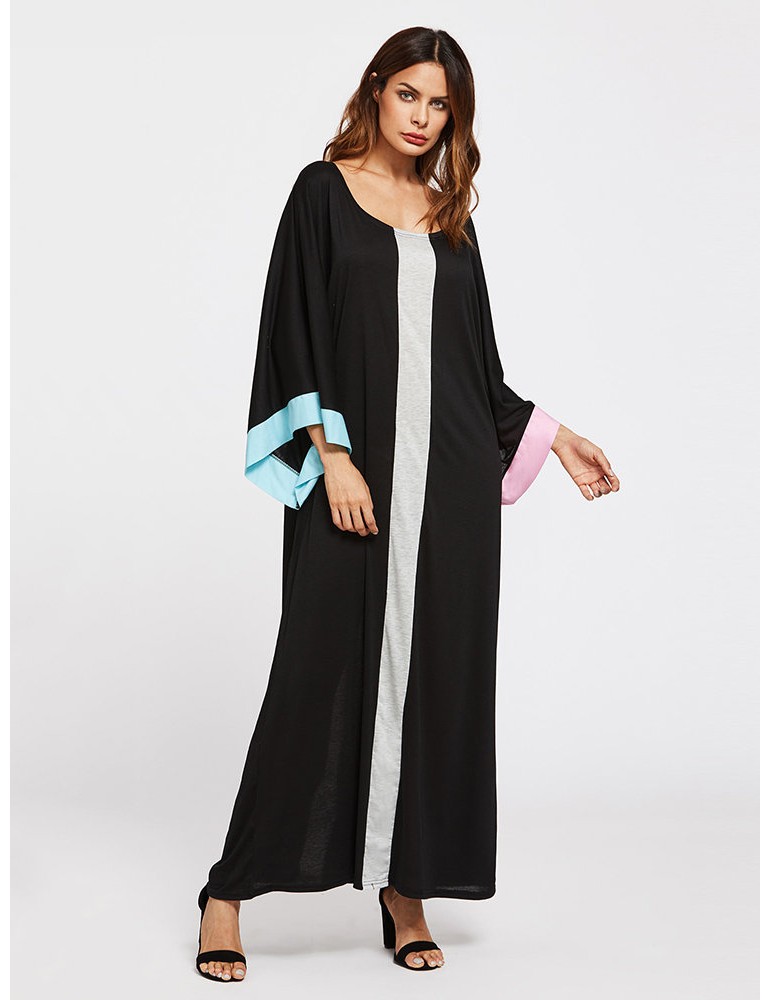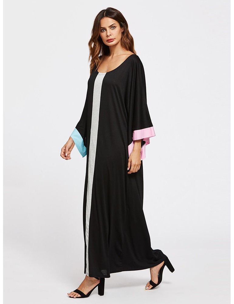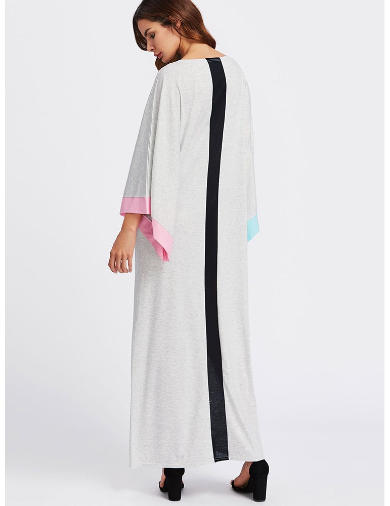 Women Contrast Color Long Sleeve Loose Long Maxi Dresses