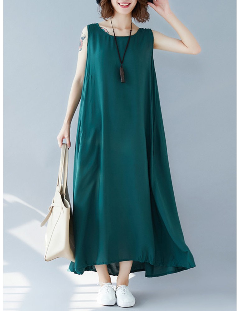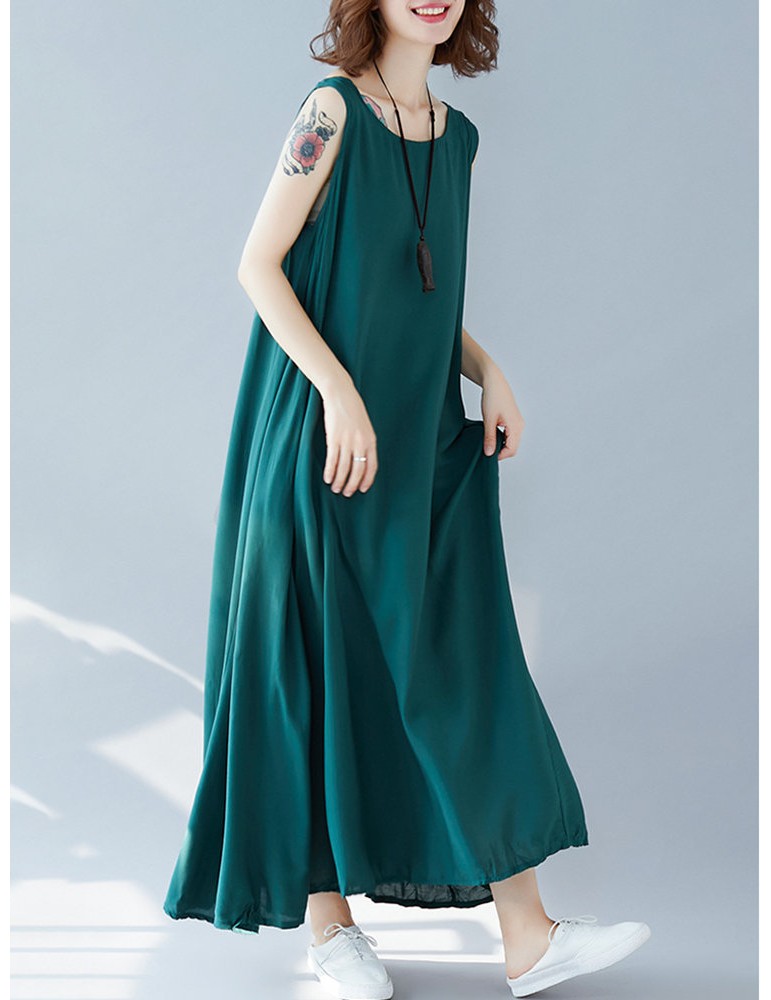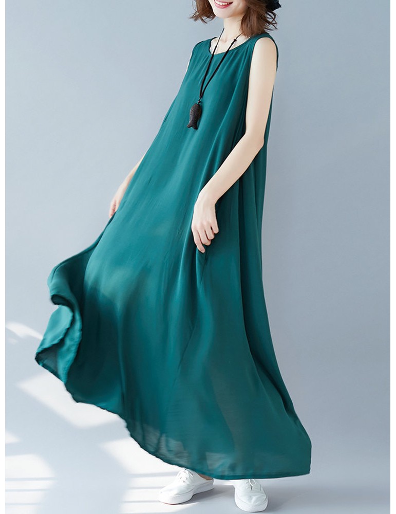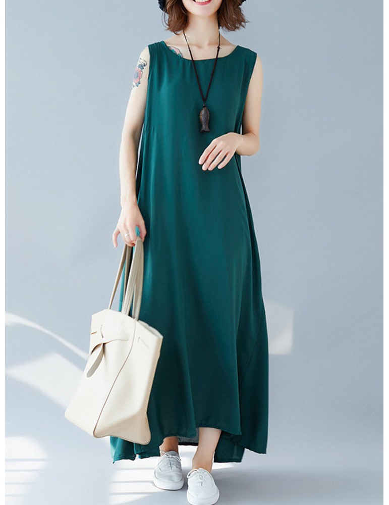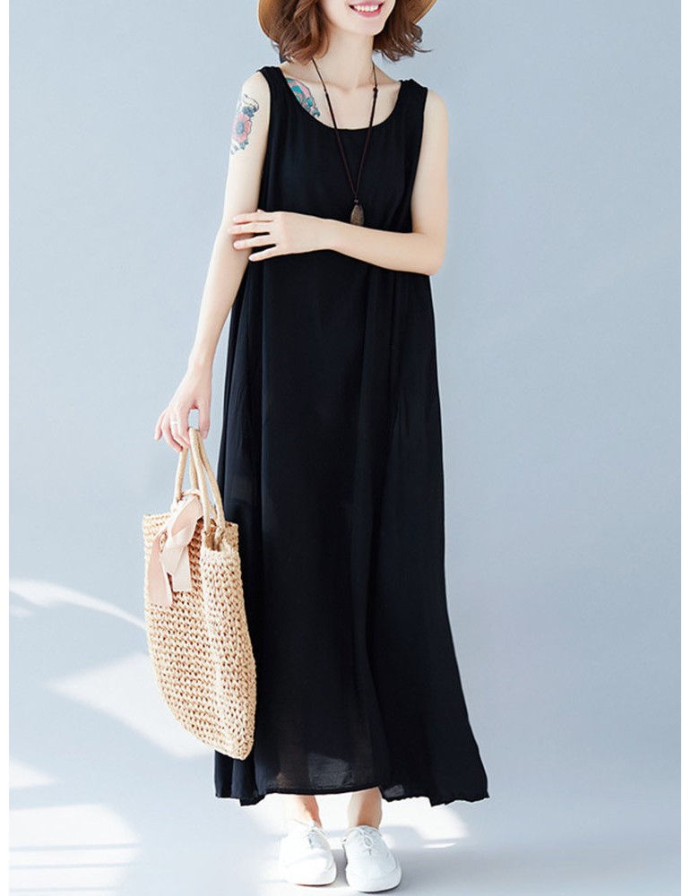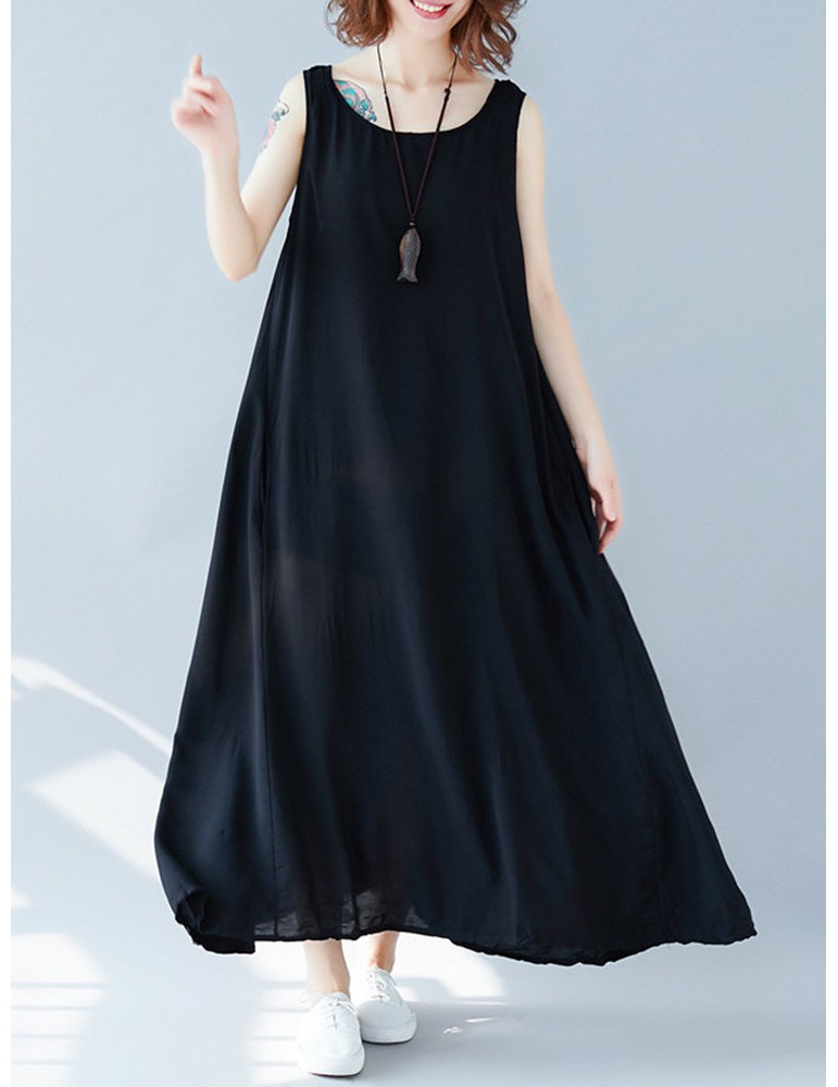 Sleeveless Solid Color Loose Maxi Dress For Women