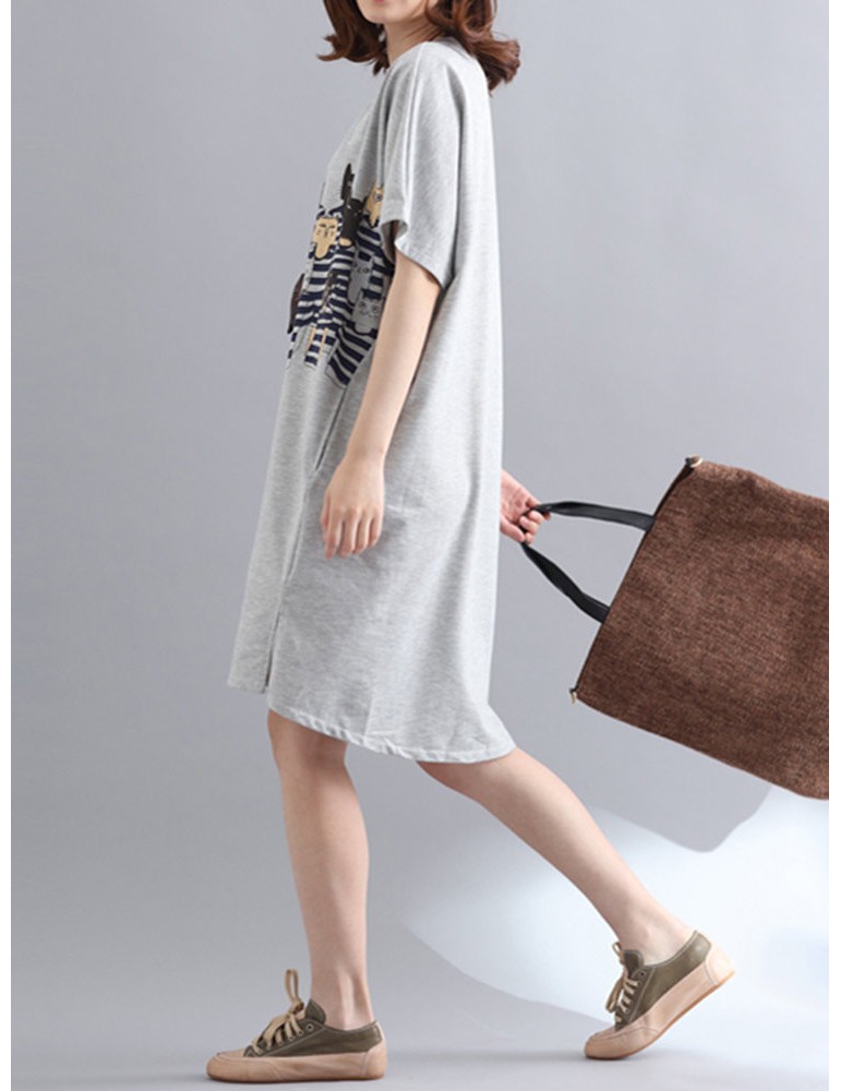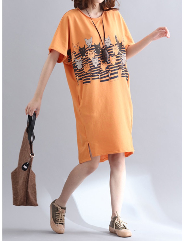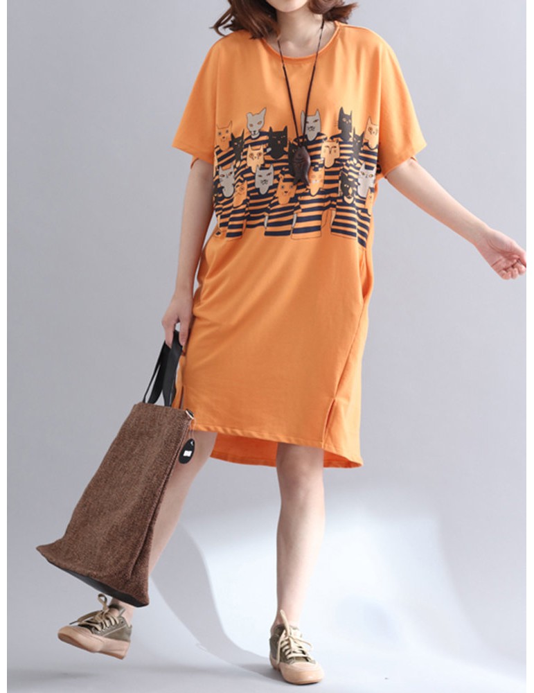 Casual Women Printed Short Sleeve Loose Dresses