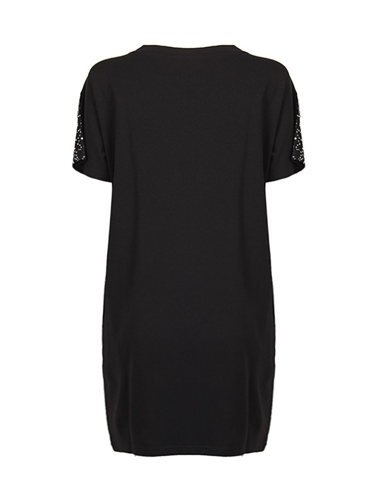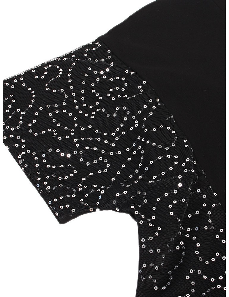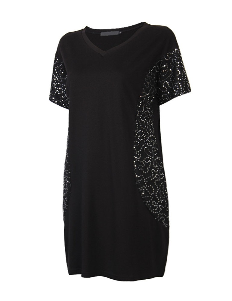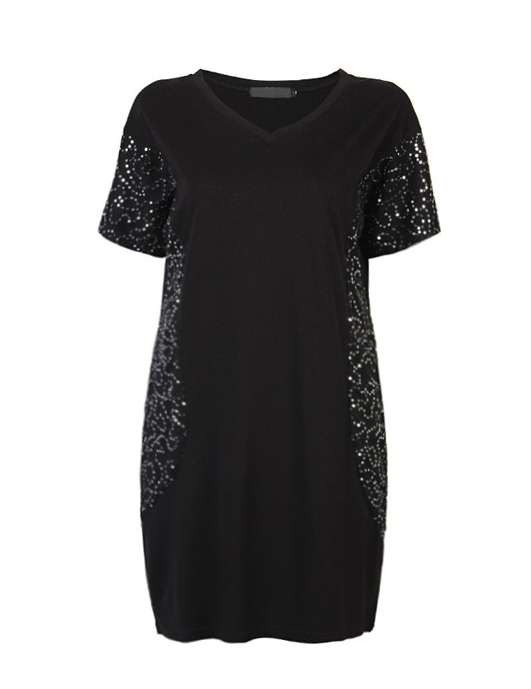 Casual Women Sequins Stitching Short Sleeve V-Neck Mini Dress