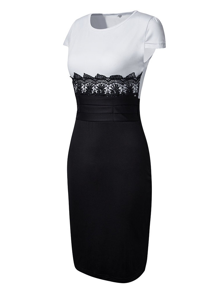 OL Crochet Lace Women Fitted Pencil Bodycon Dress