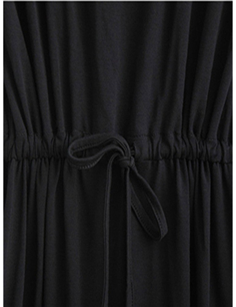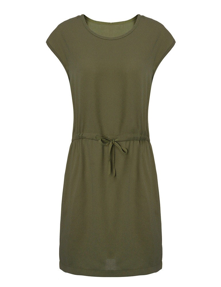 Tie Elastic Waist Pure Color Casual Mini Dress