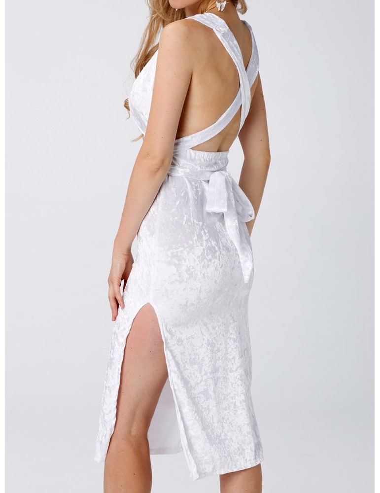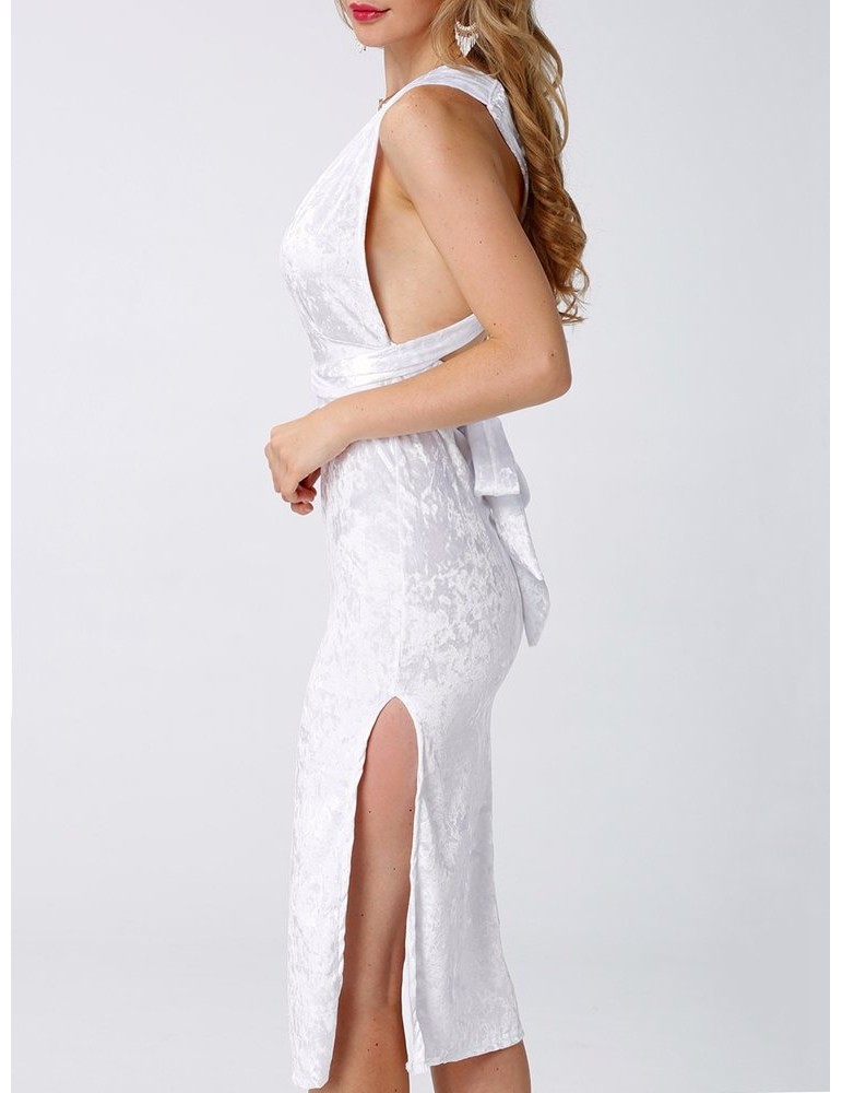 Velvet Deep V Backless Slit Hem Sleeveless Women Dress