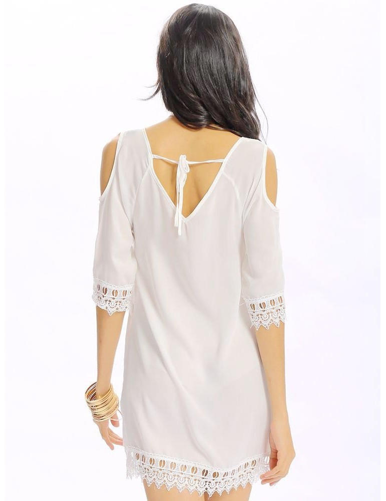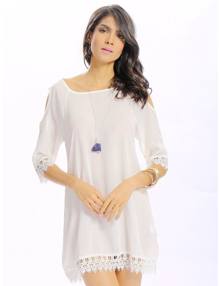 Women Casual Crochet lace Off Shoulder O-neck Half Sleeve Loose Mini Dress