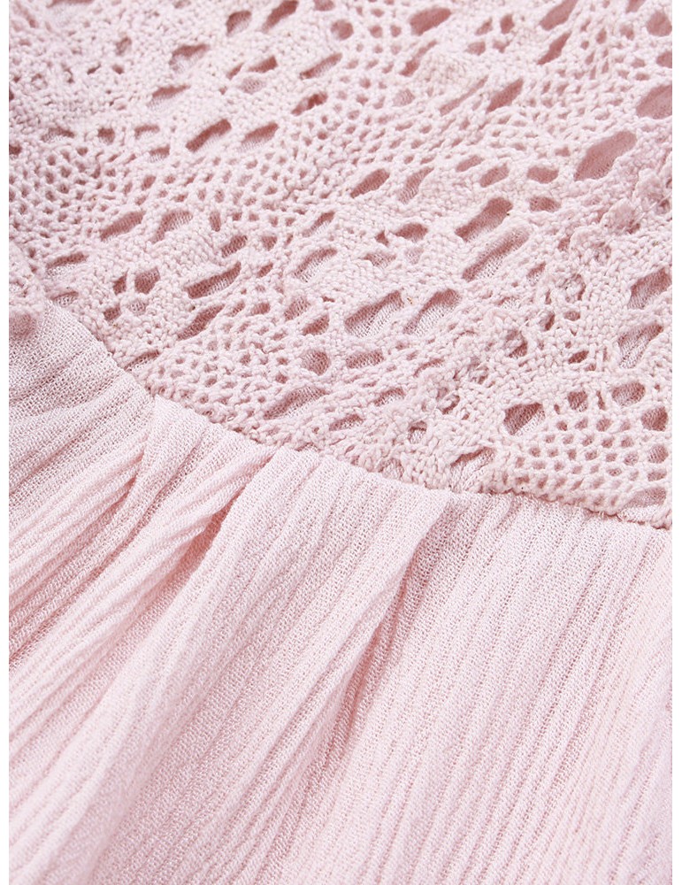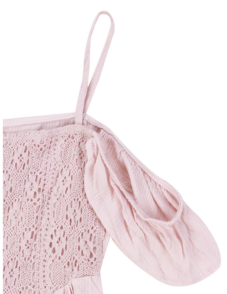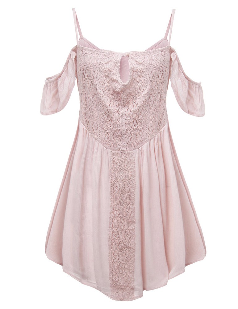 Sexy Women Off Shoulder Floral Crochet Pure Color Mini Dress