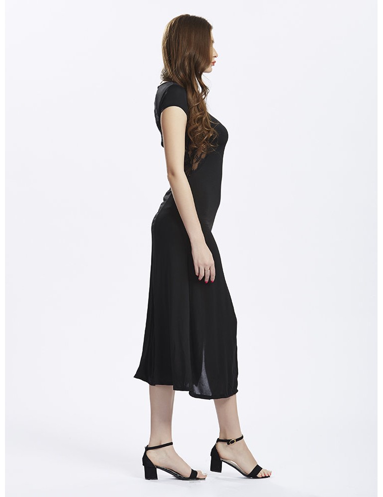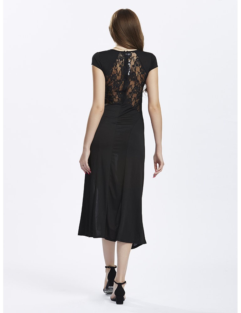 Lace Insert Spliced Side Split Sexy Women Party Dress
