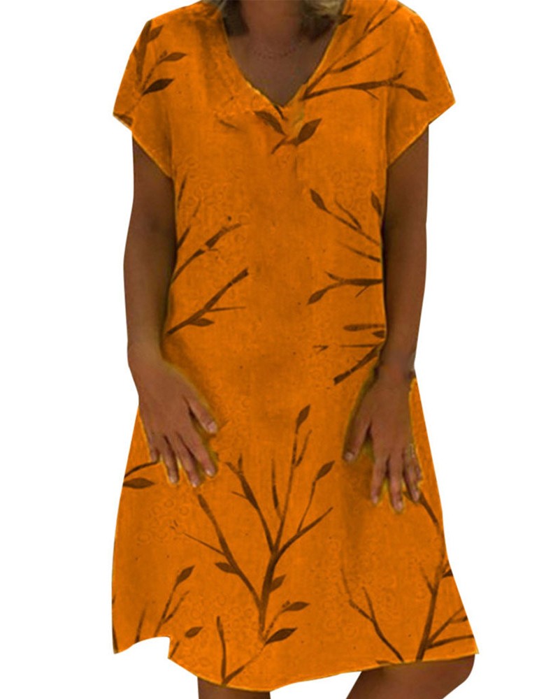 Floral Print Summer Short Sleeve V-neck Dress For Women