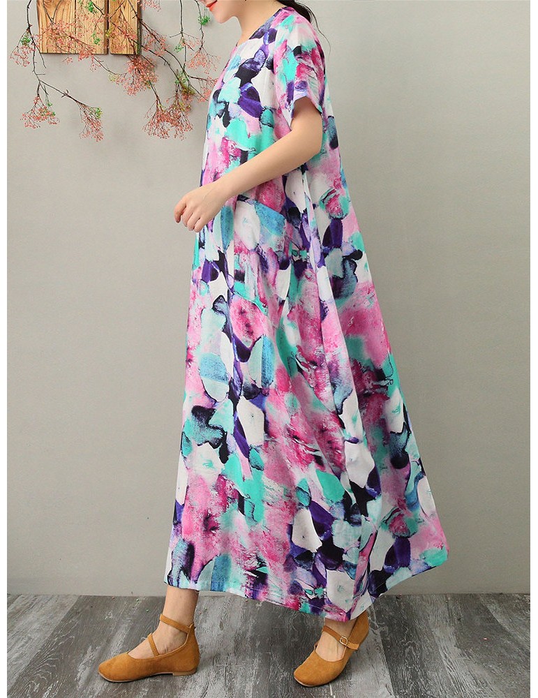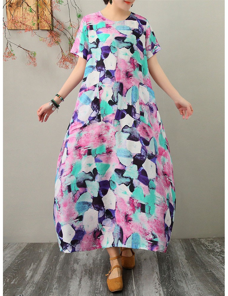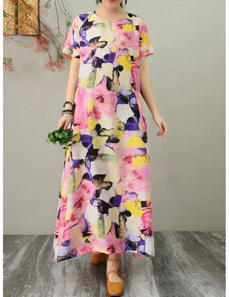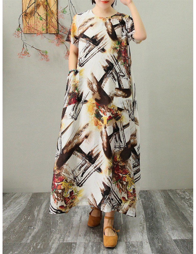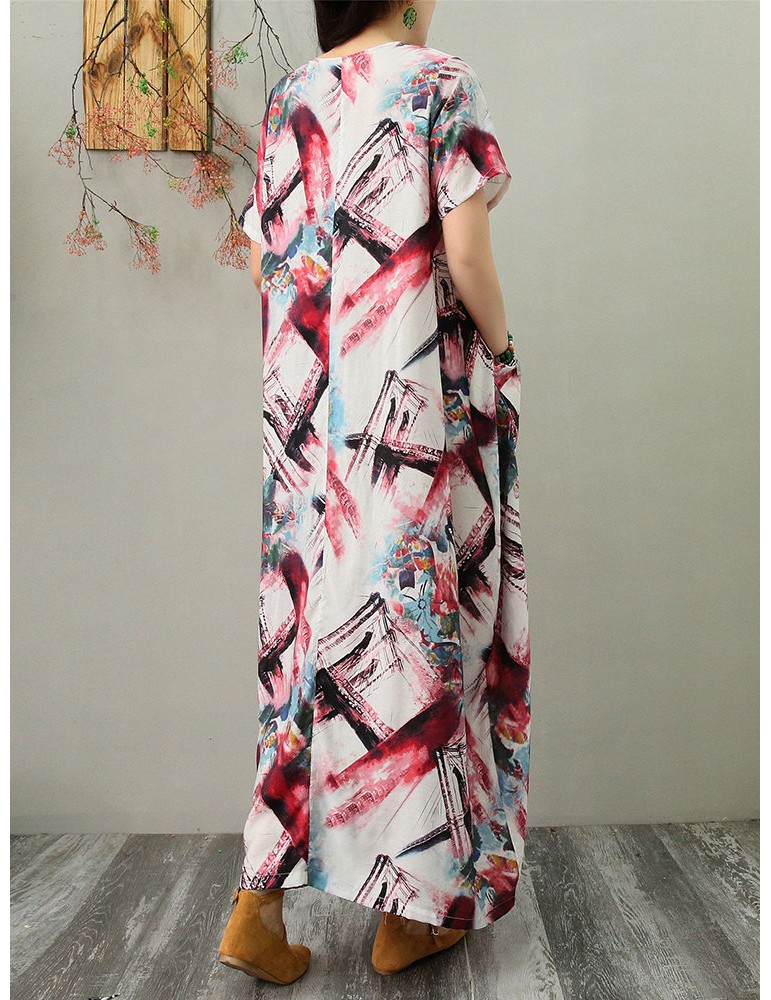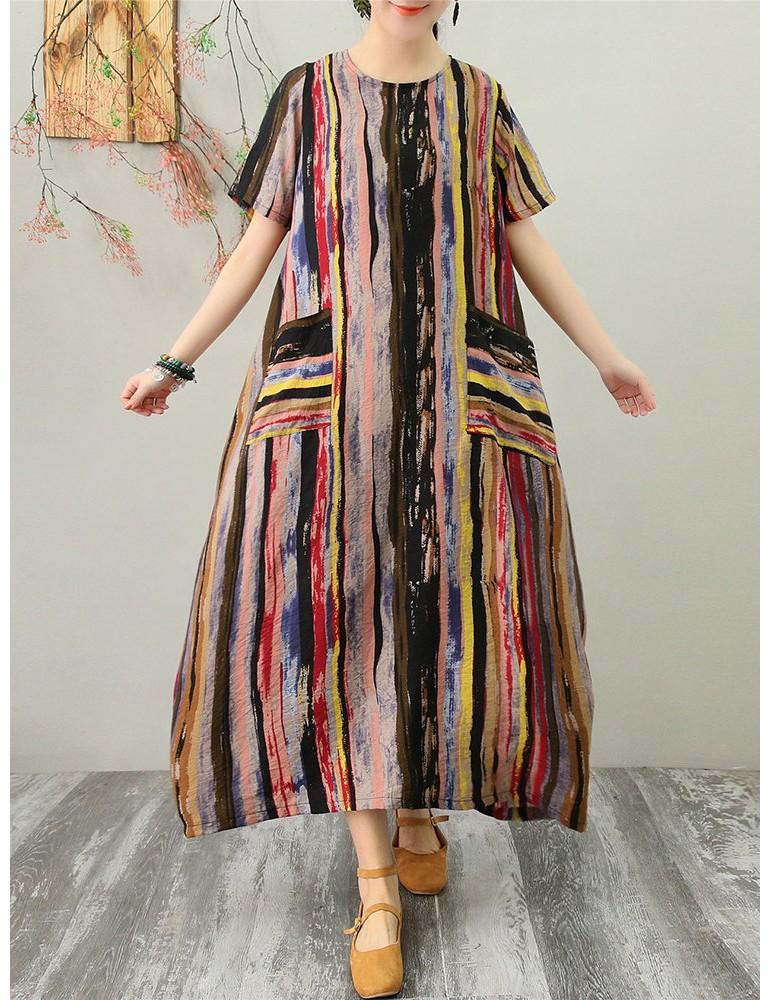 Multicolor Striped Pocket Short Sleeve Vintage Dress