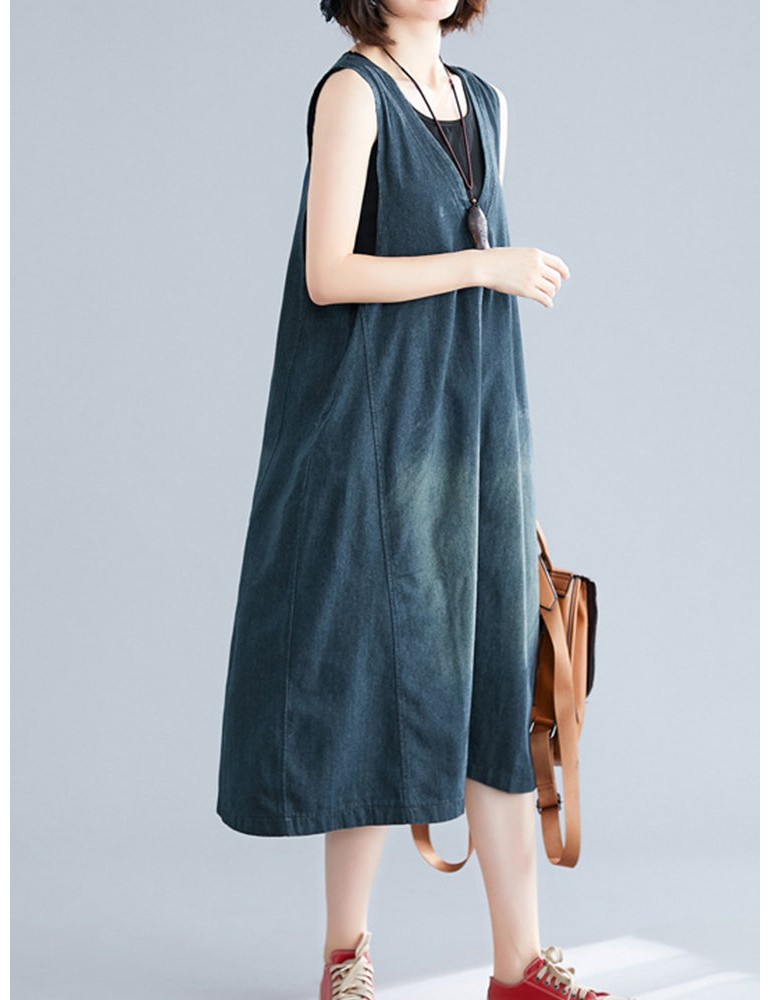 Casual V-neck Sleeveless Denim Overall Dress