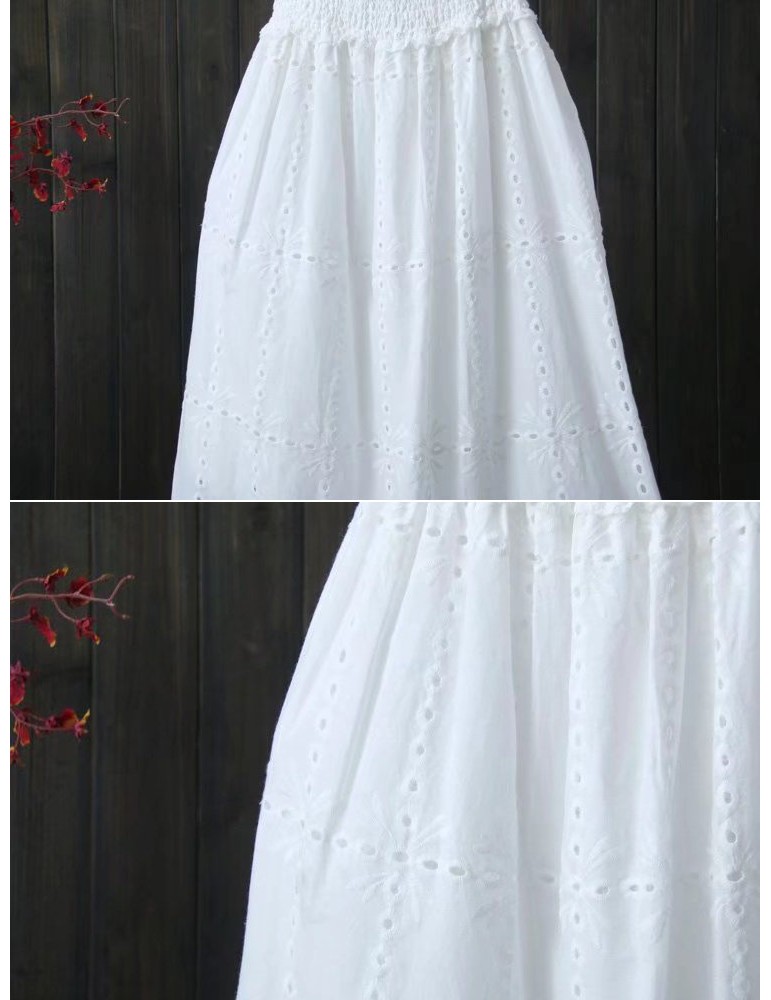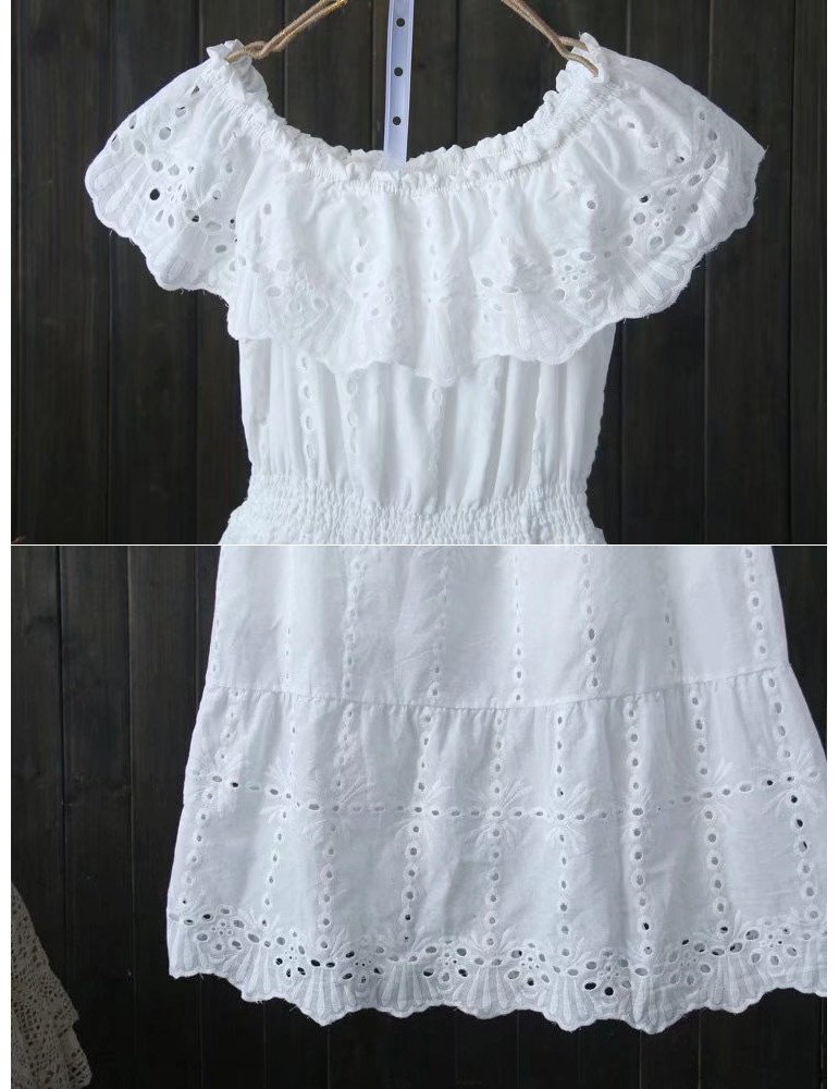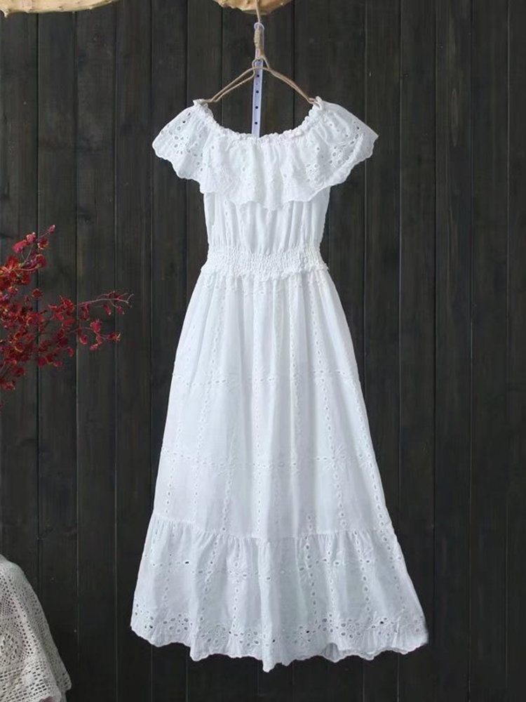 White Lace Embroidered Off Shoulder Mid-Long Dresses
