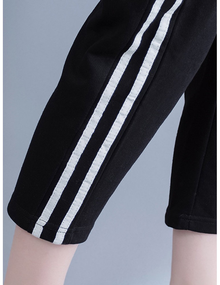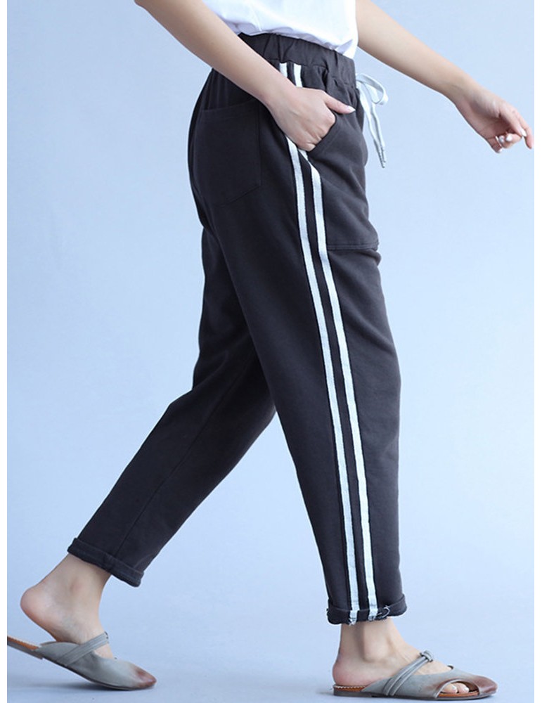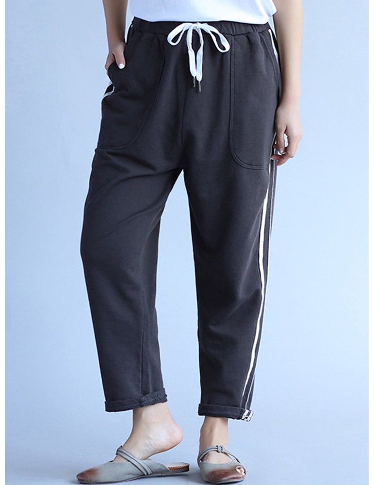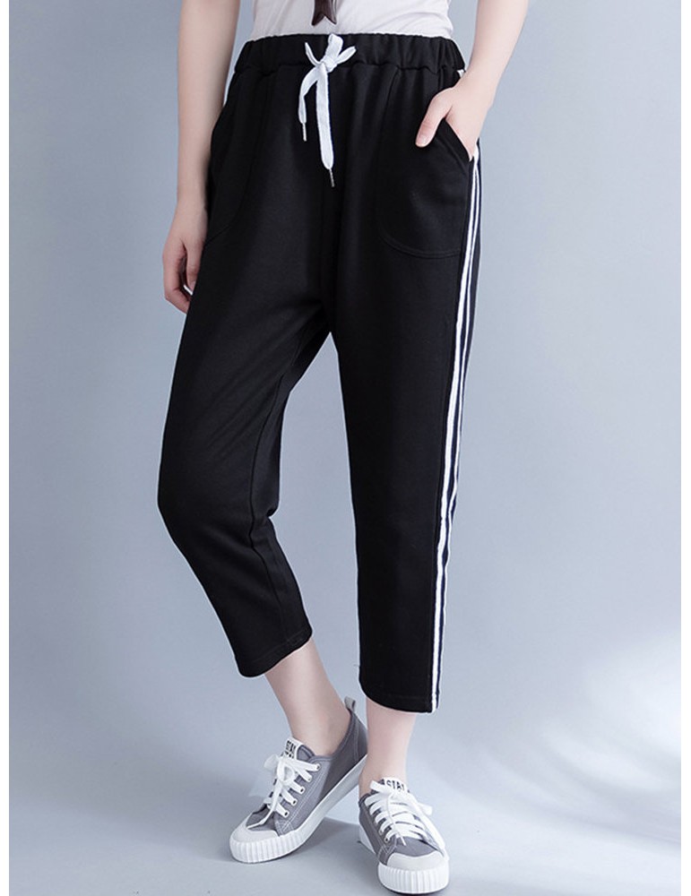 Casual Stripe Drawstring Waist Women Pants