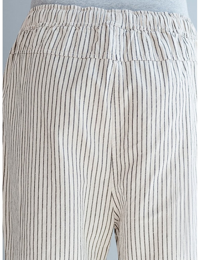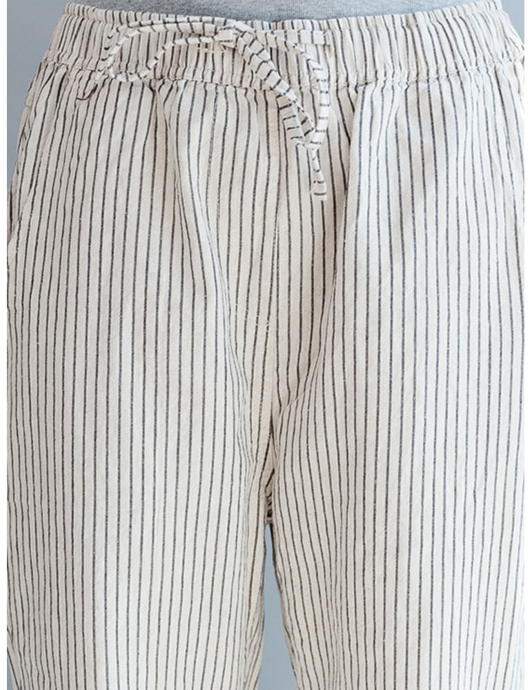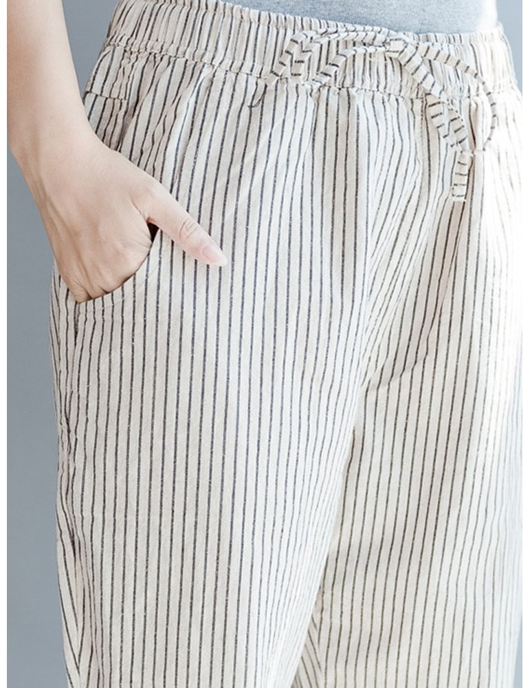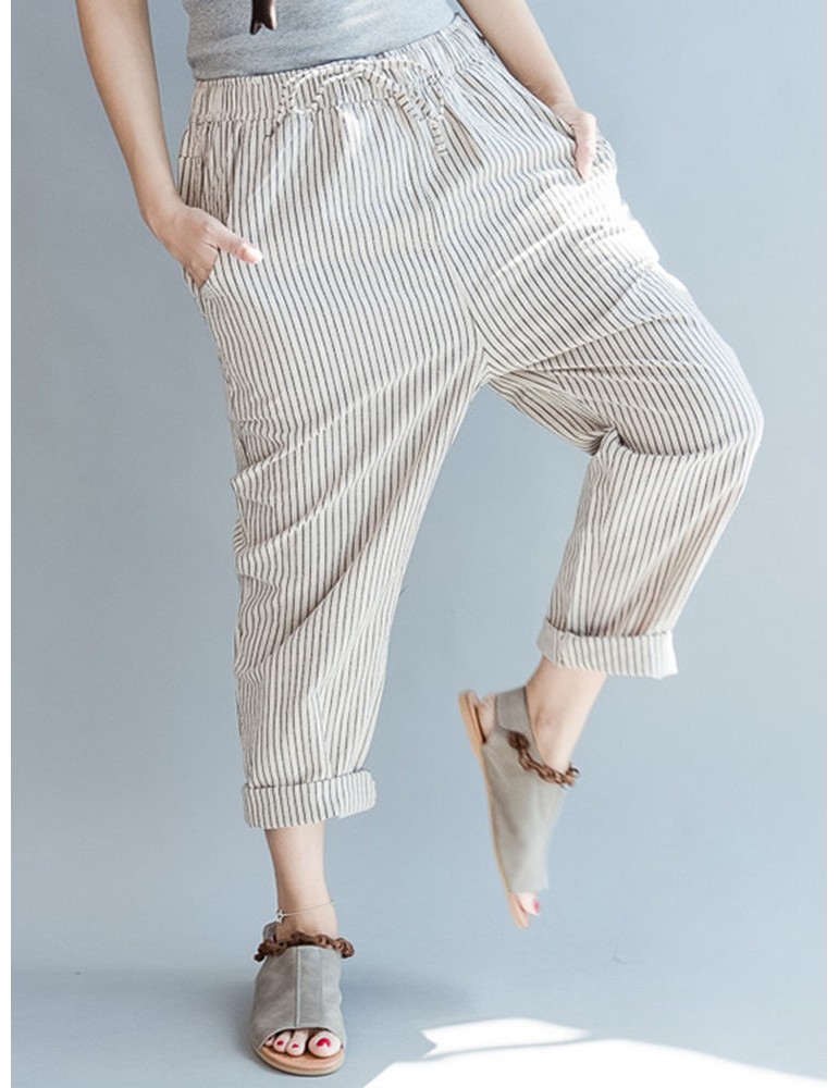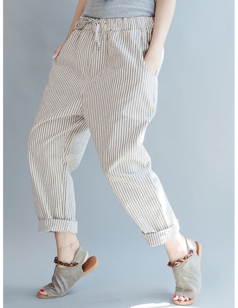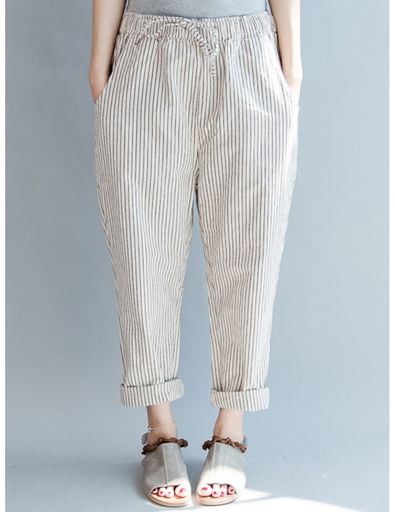 Loose Drawstring Waist Stripe Print Casual Harem Pants