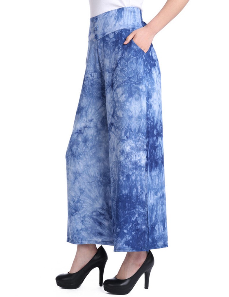 Casual Tie-dyed Wide Leg High Waist Pants For Women