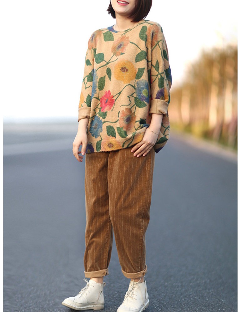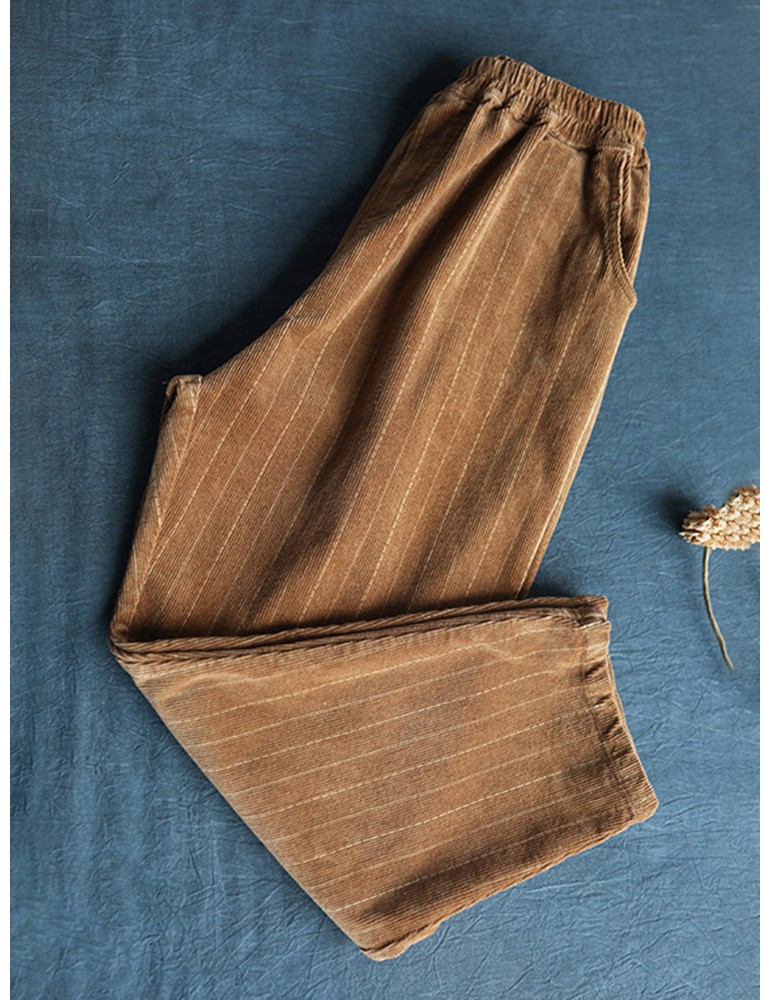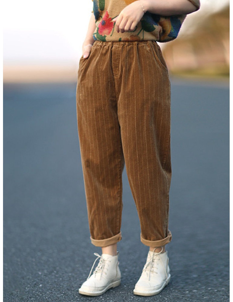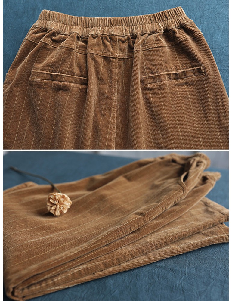 Harem Vertical Striped Solid Color Corduroy Pants