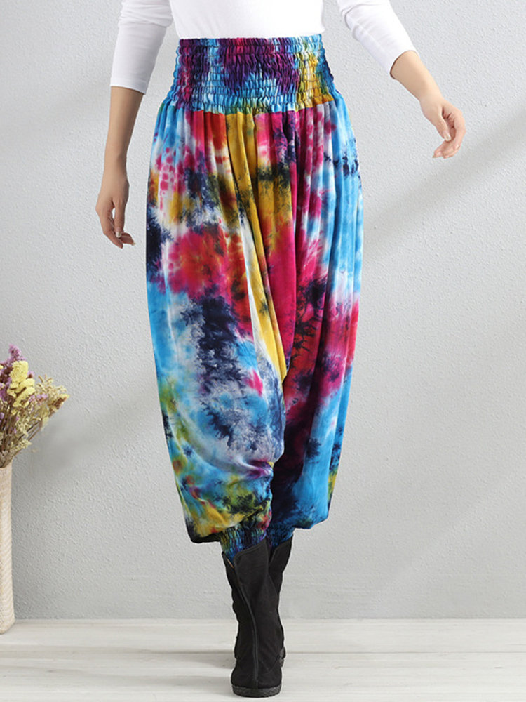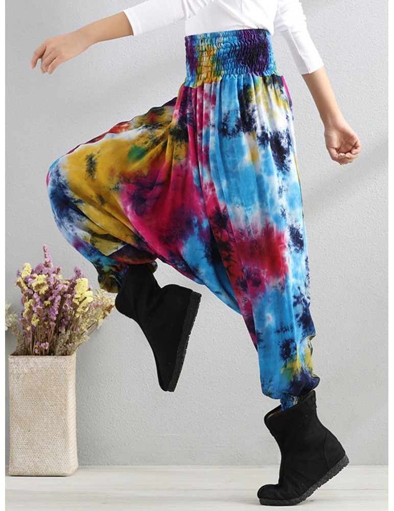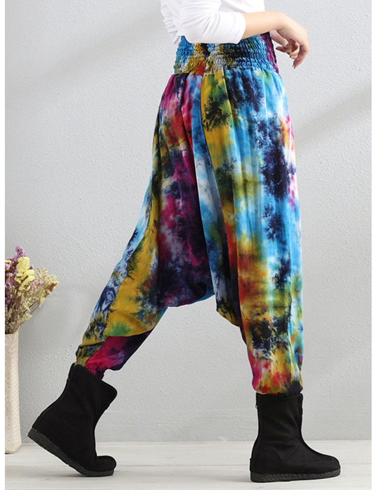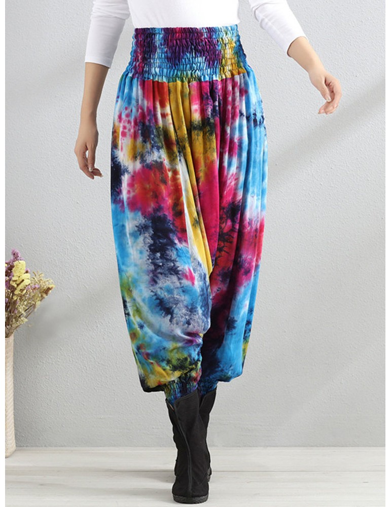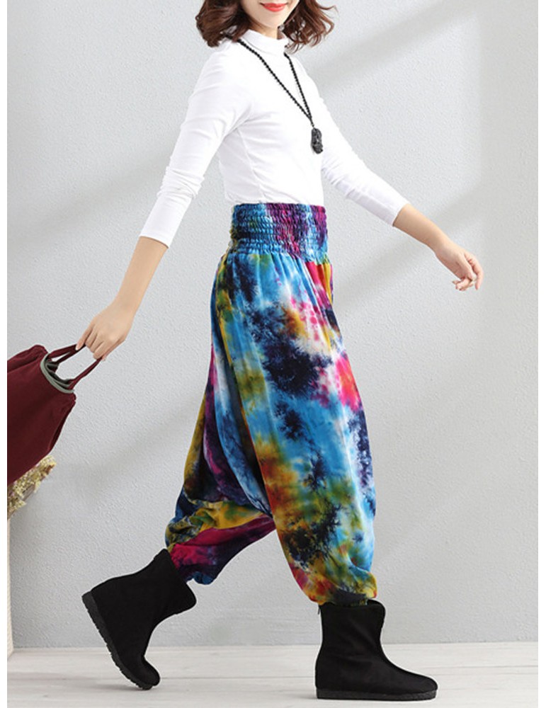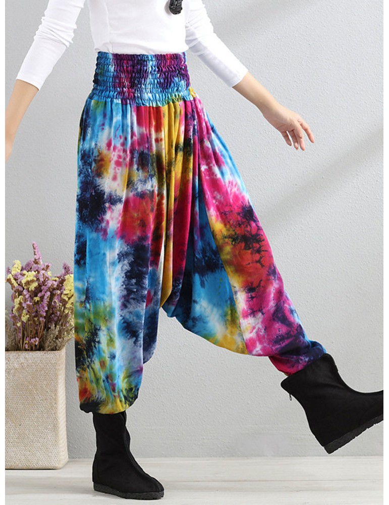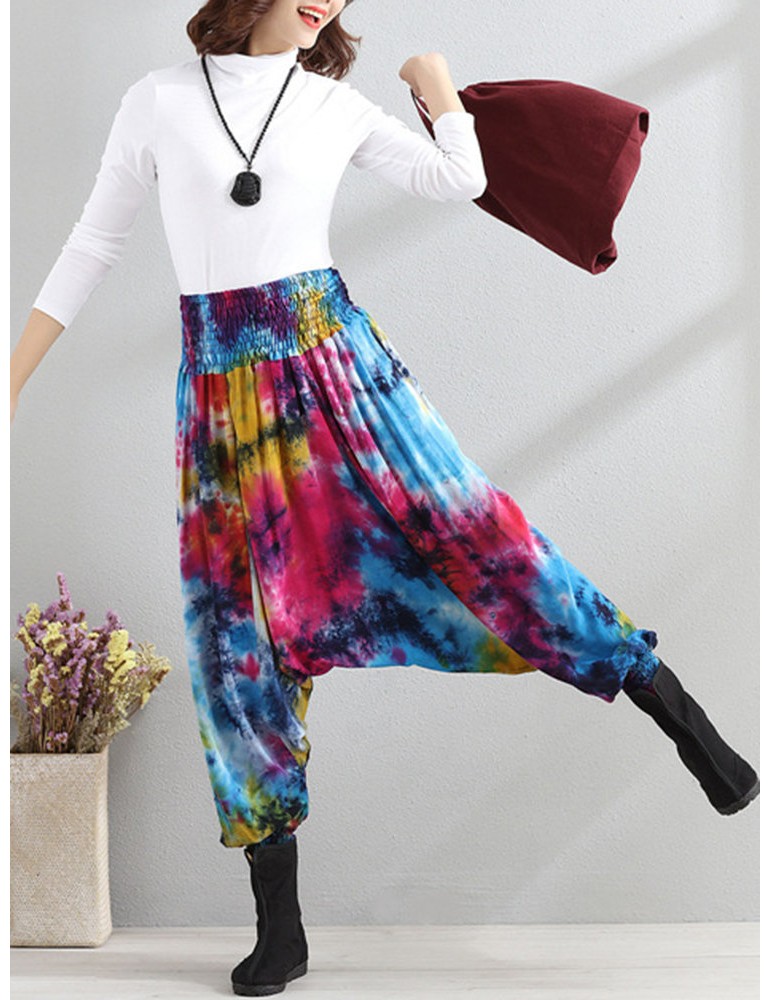 Casual Loose Printed Elastic Waist Women Wide Leg Pants