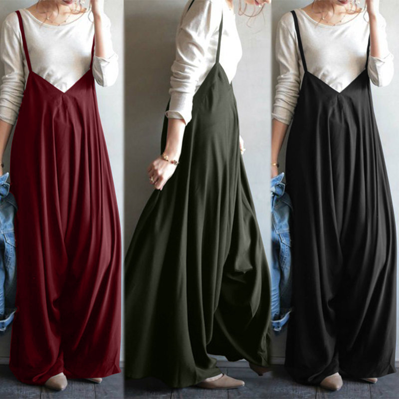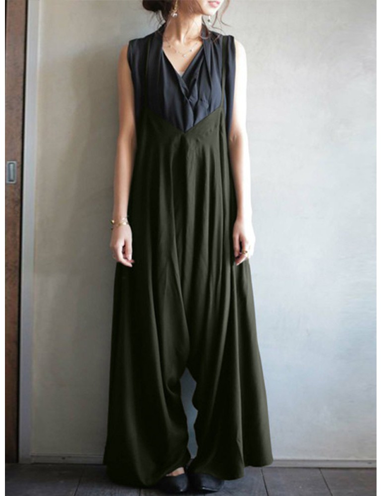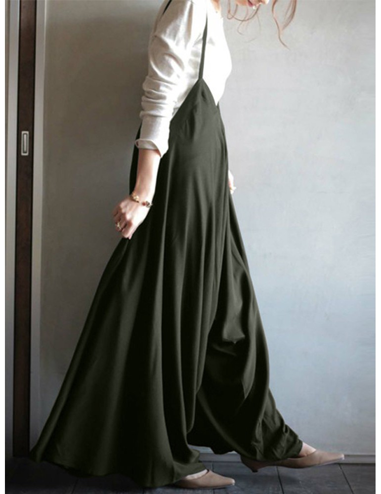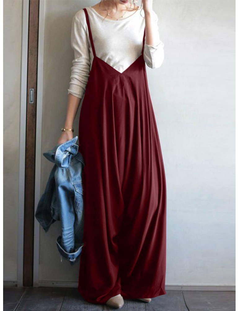Spaghetti Strap Solid Color Wide Leg Loose Casual Romper