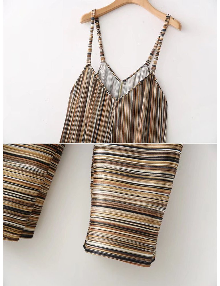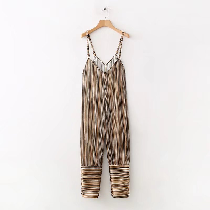 Casual Stripe Spaghetti Strap Loose V-neck Harem Jumpsuits
