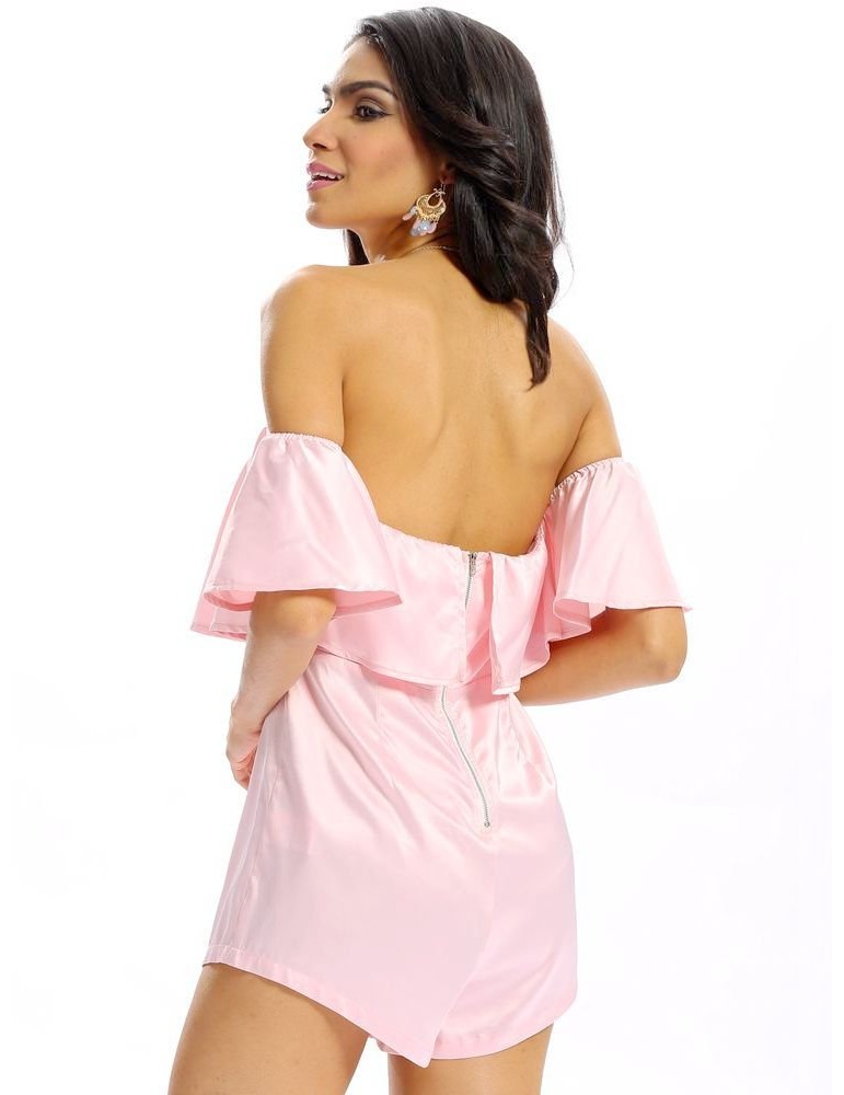 Women Sexy Off Shoulder Layered Short Sleeve Jumpsuit