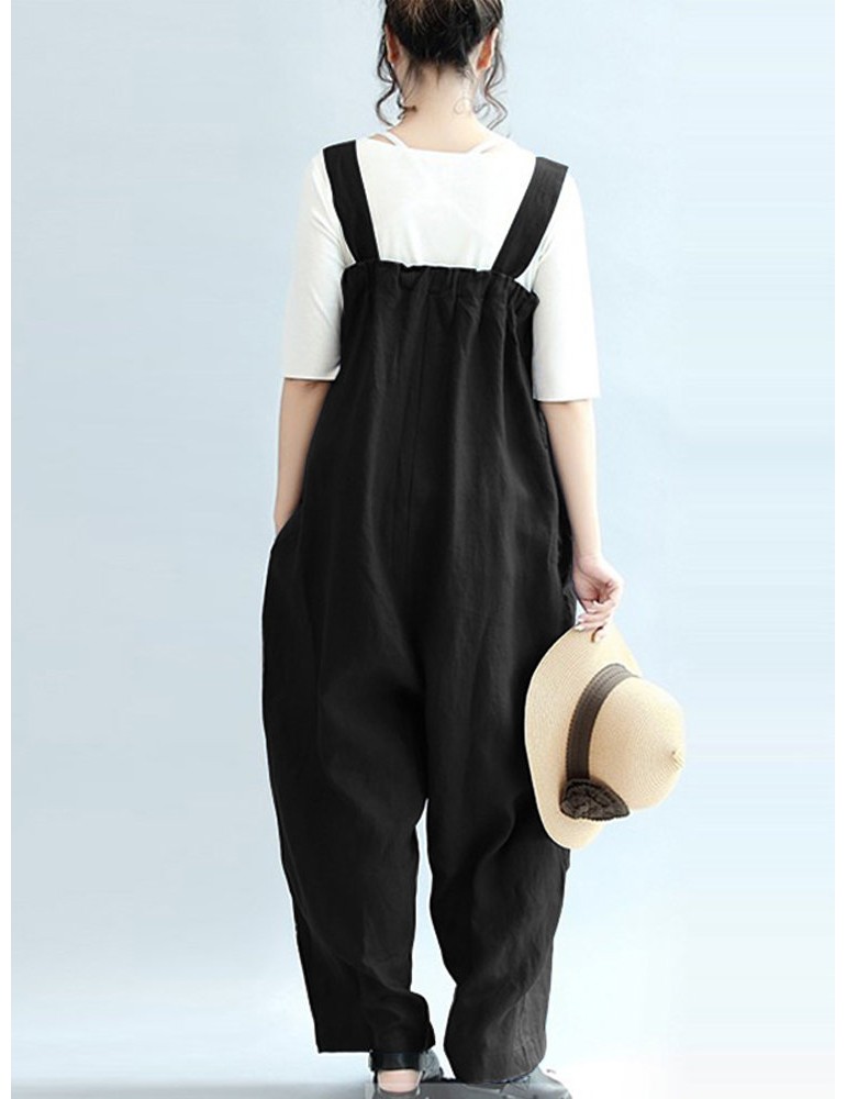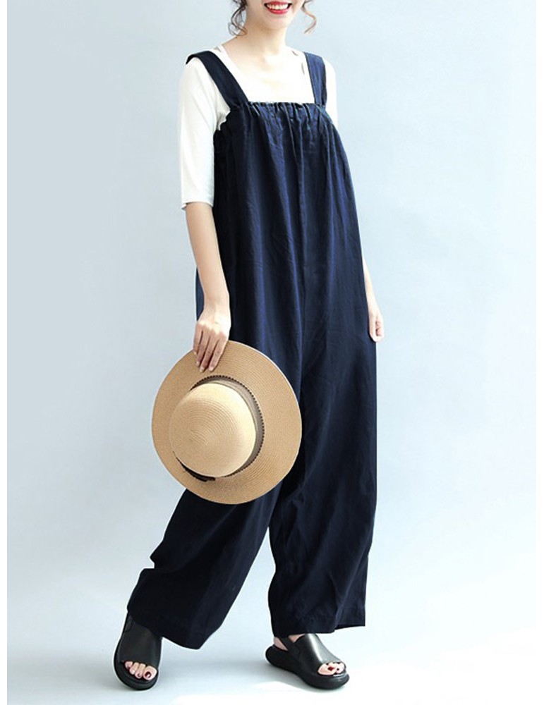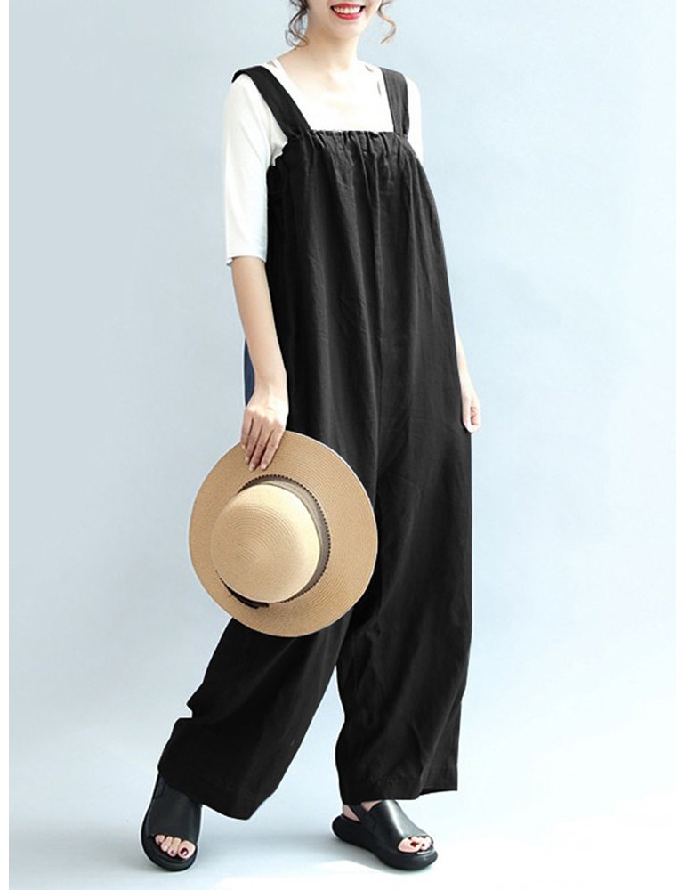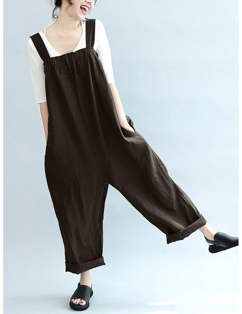 Vintage Pure Color Sleeveless Side Pocket Long Jumpsuits