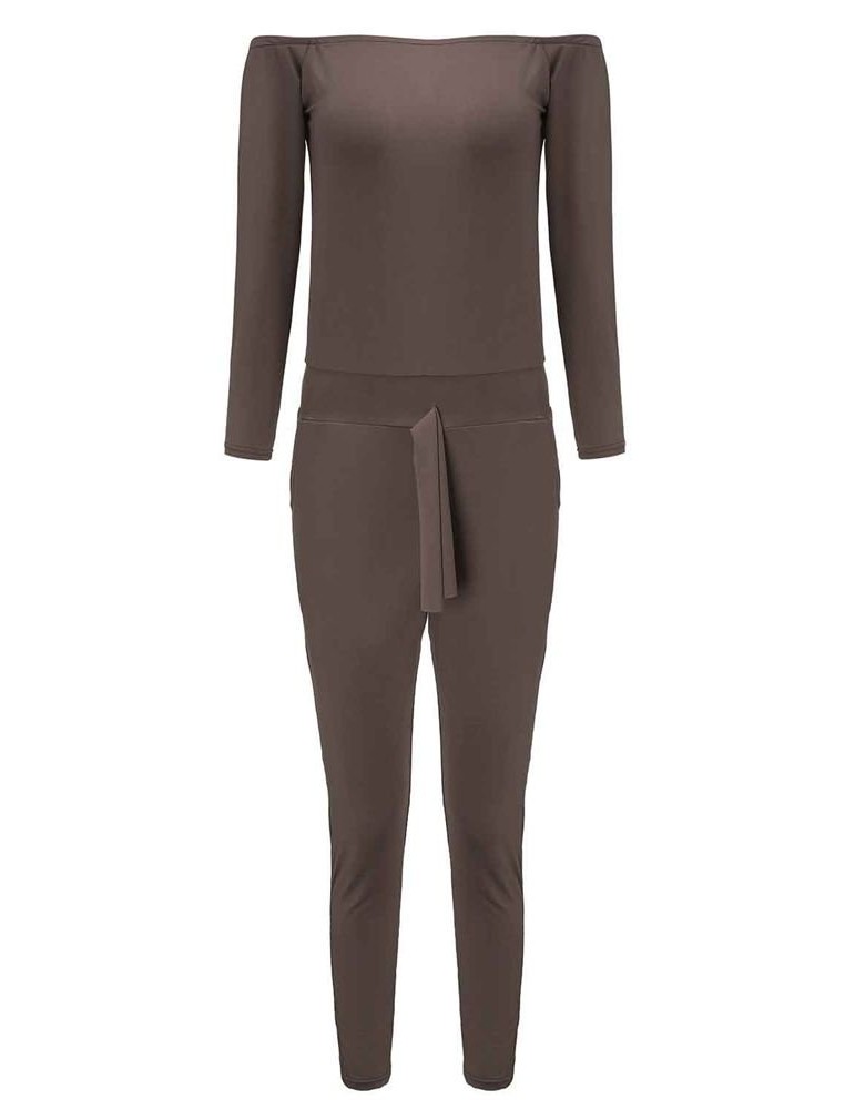 Off Shoulder Solid Long Sleeve Sexy Women Bodycon Jumpsuit