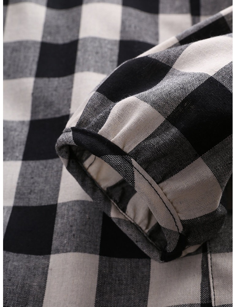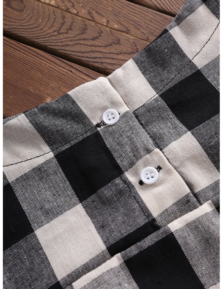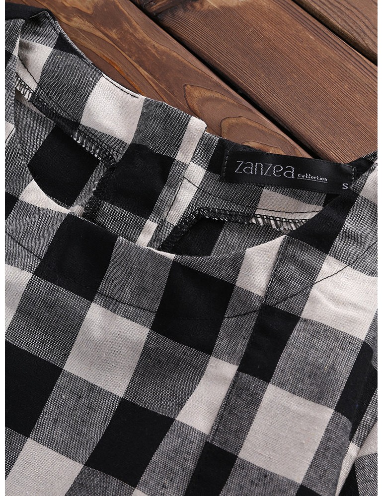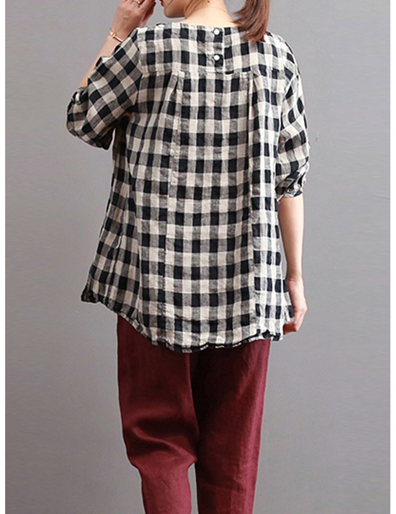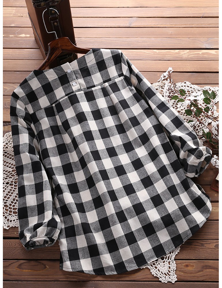 Women Check Plaid Long Sleeve Irregular Hem Loose Blouses