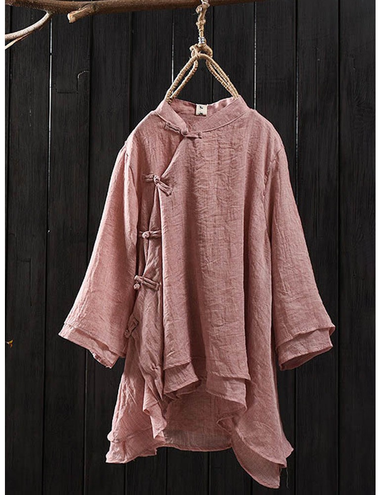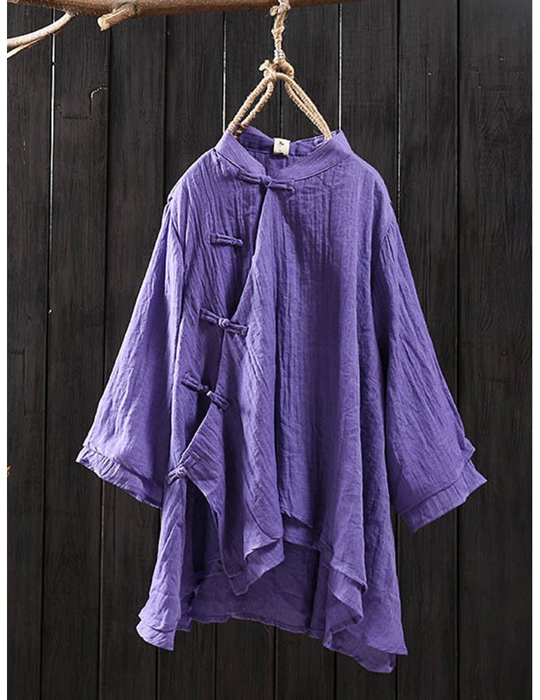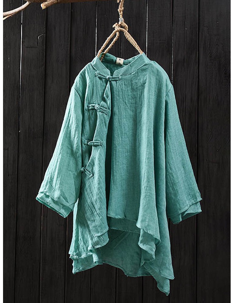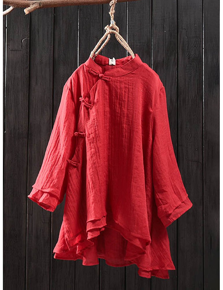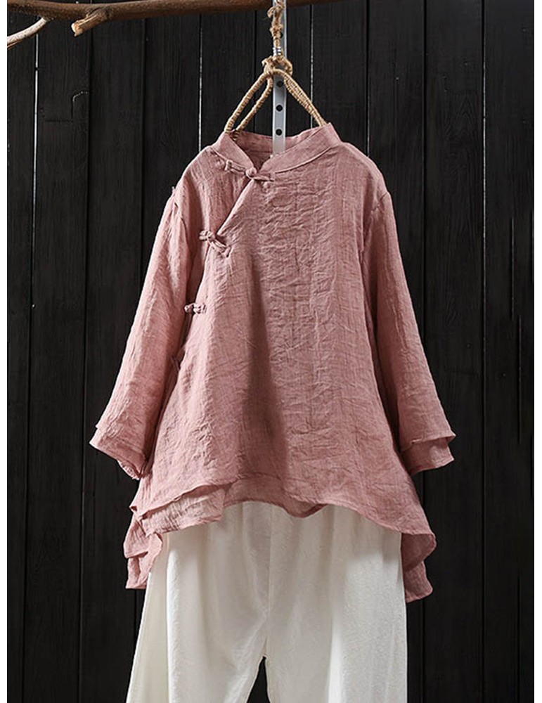 Solid Color Layered Frog Button Vintage Blouse