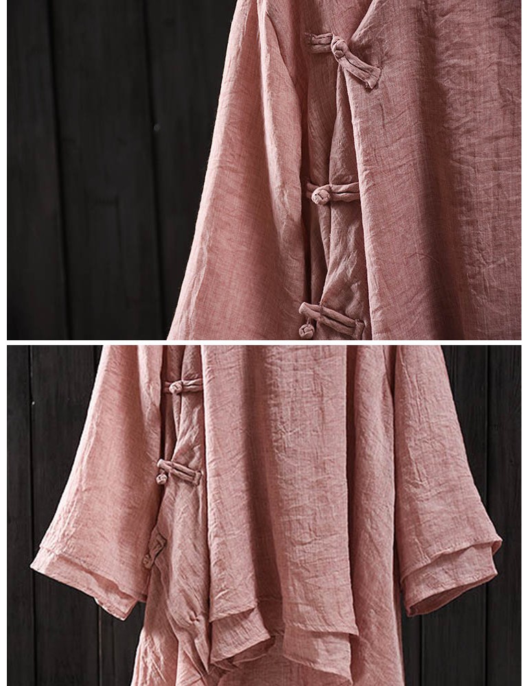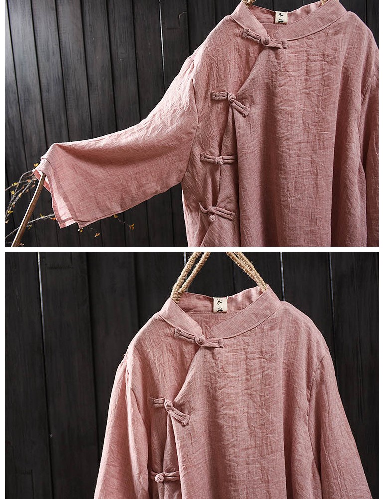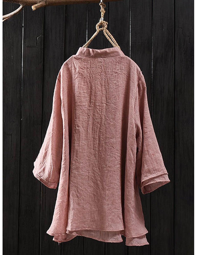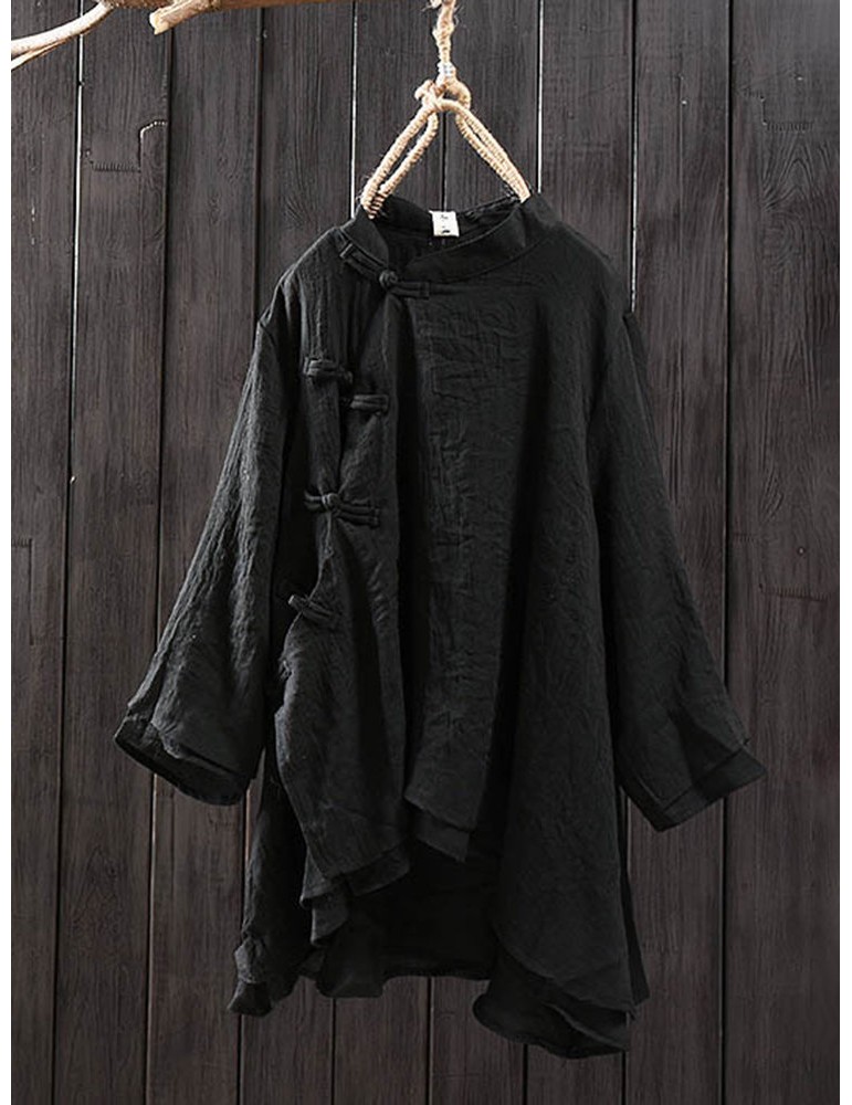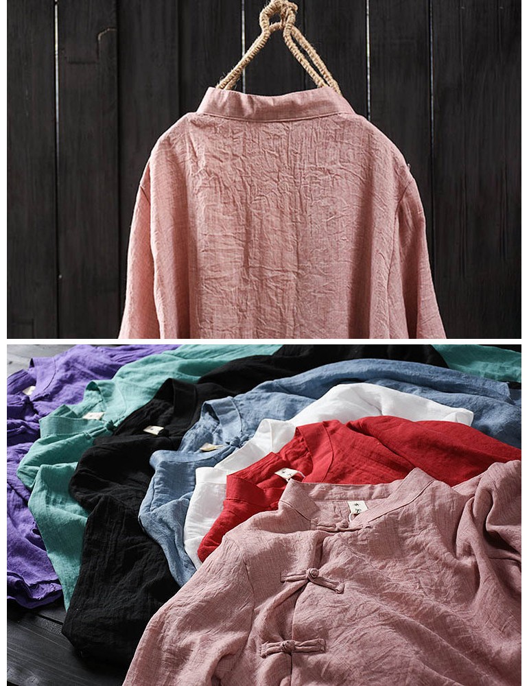 Solid Color Layered Frog Button Vintage Blouse