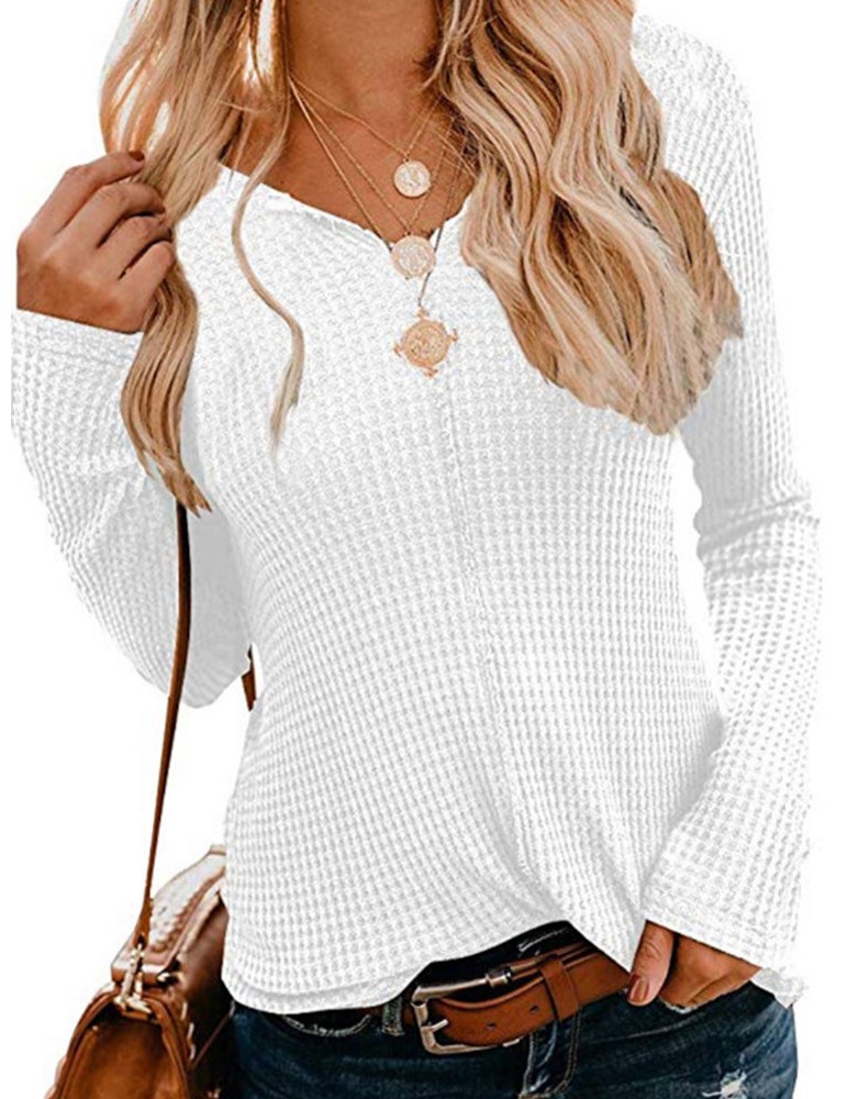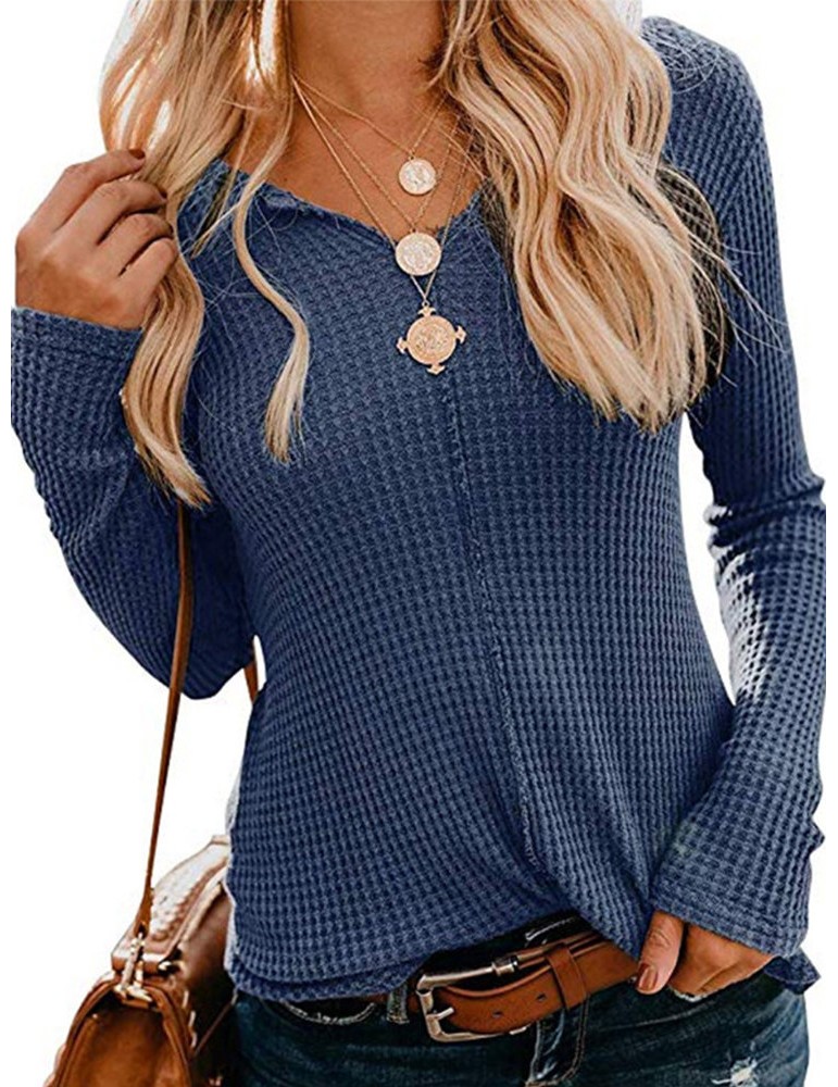 Knitting Solid Color Long Sleeve V-neck Blouse For Women