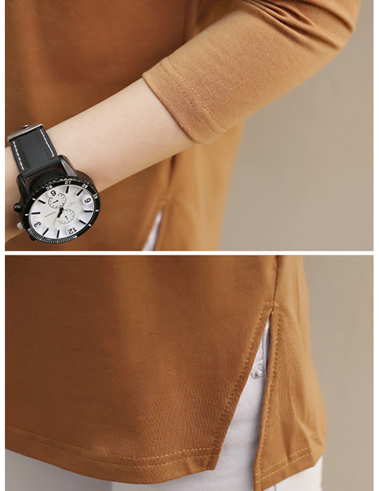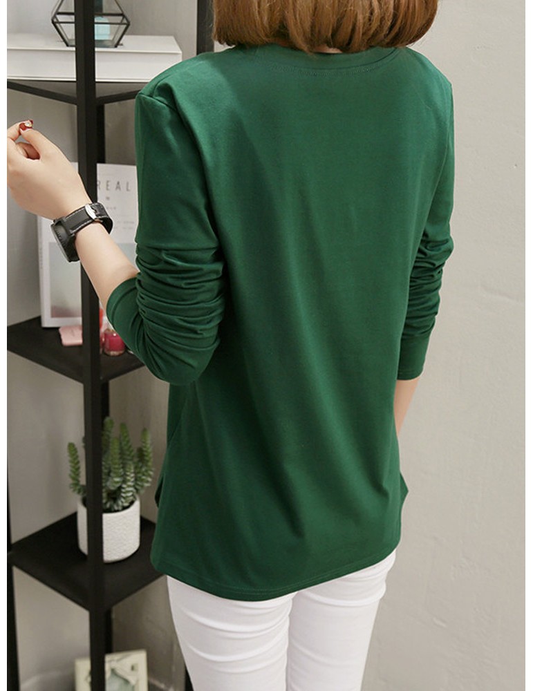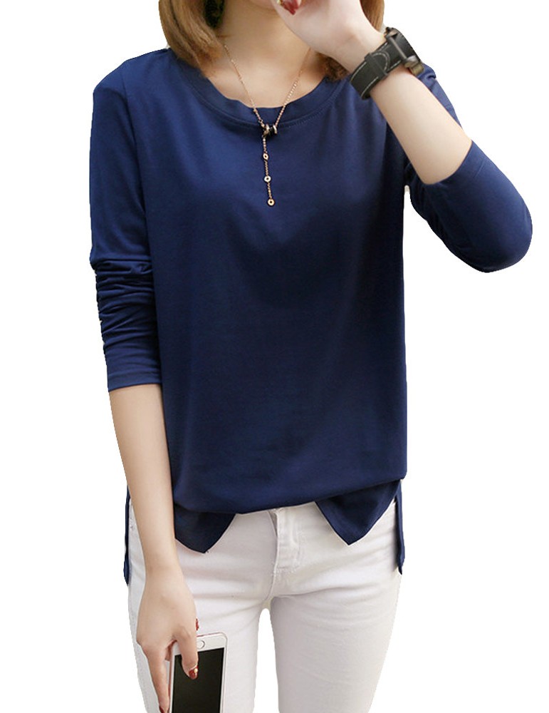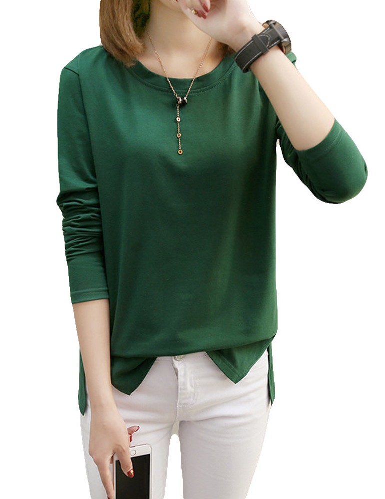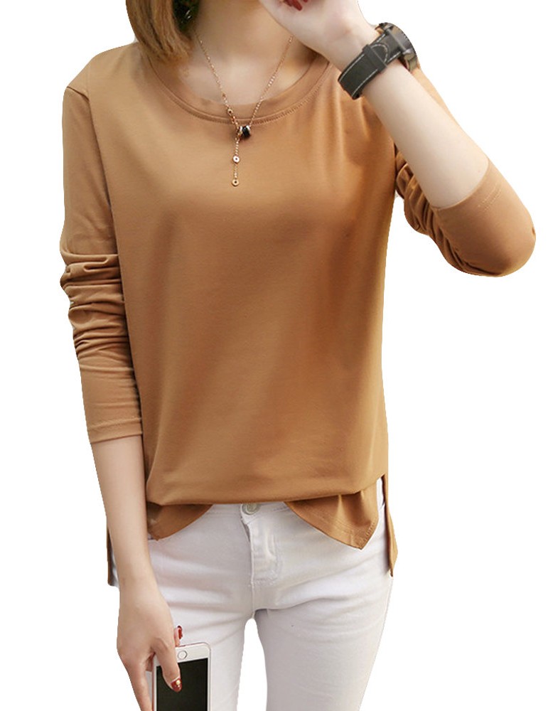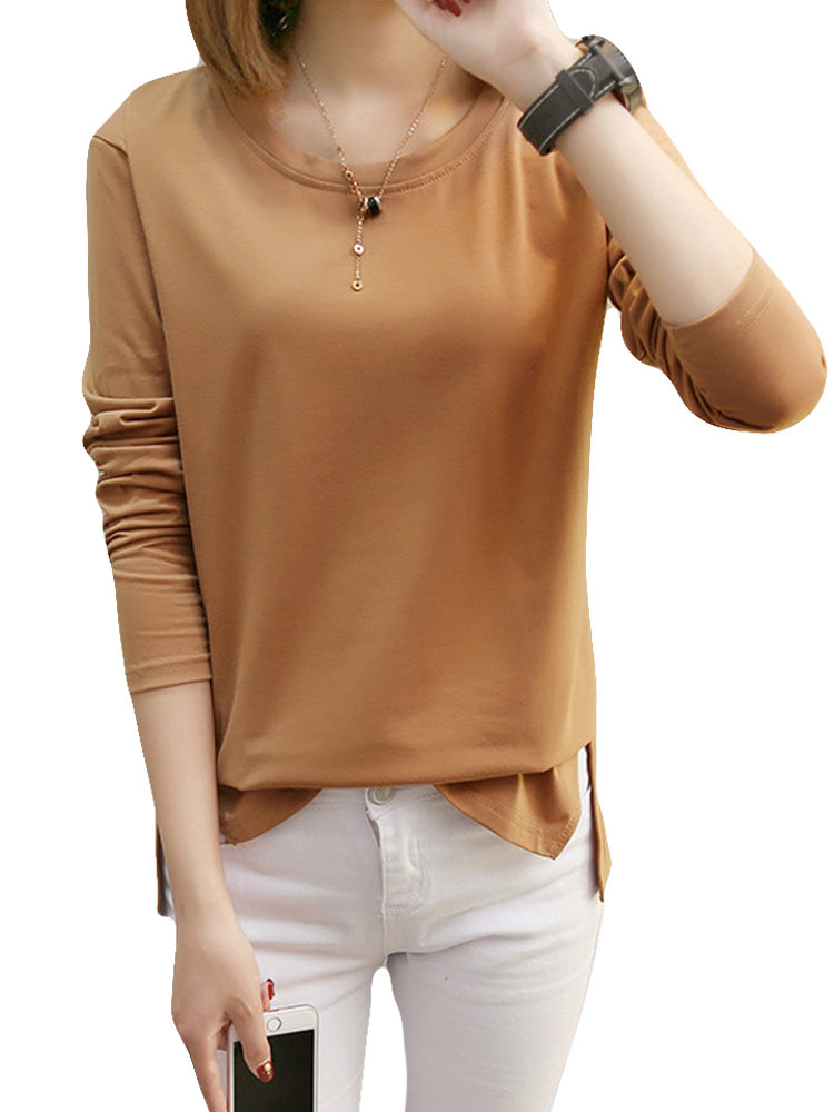 Solid Color O-neck Long Sleeve Casual Blouse