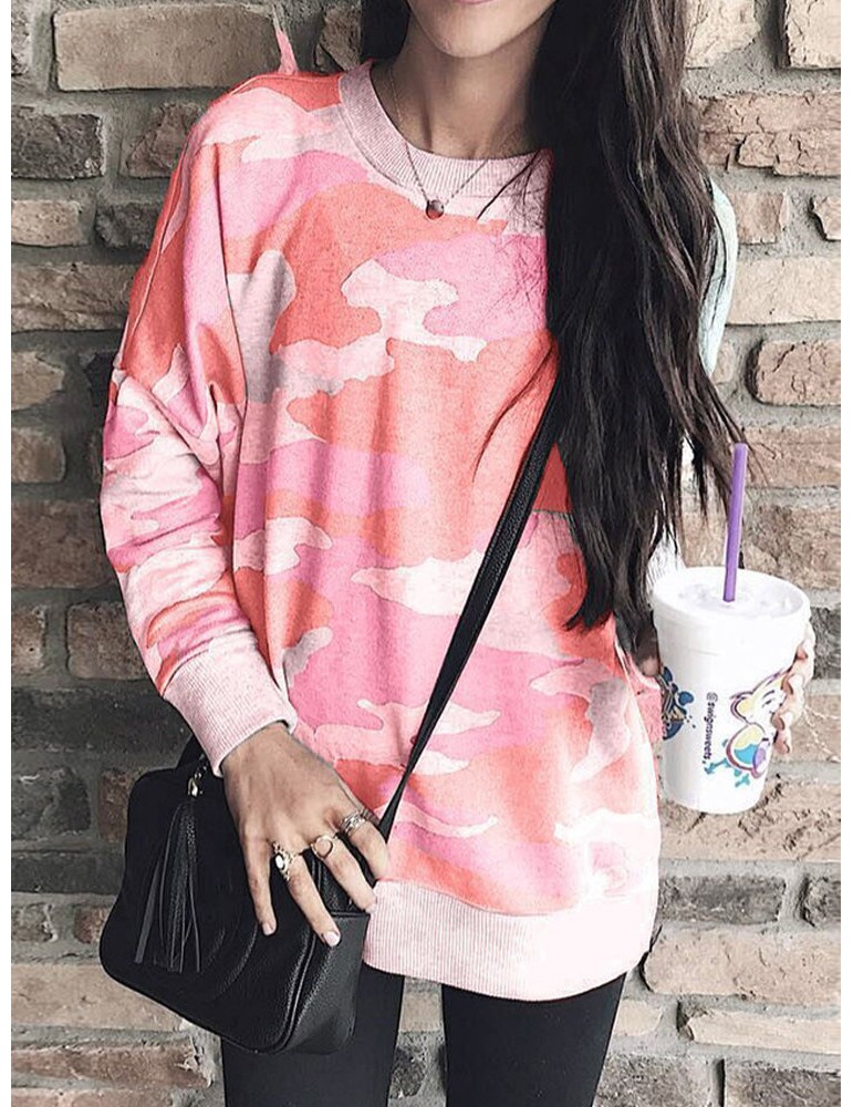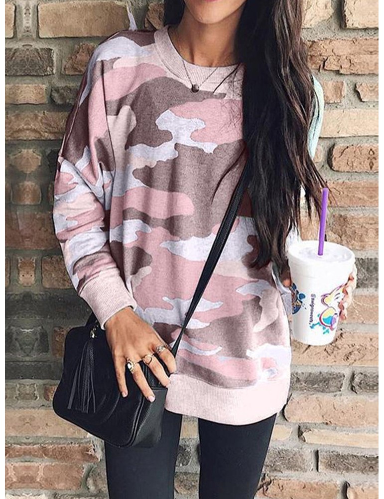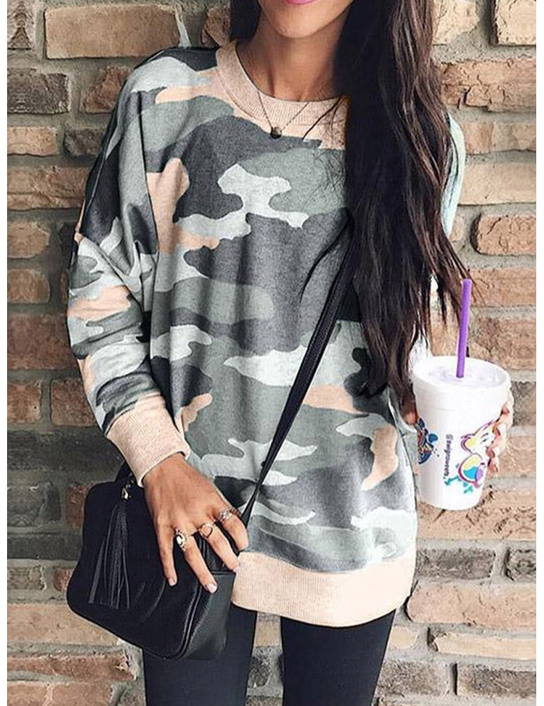 Camouflage Print Long Sleeve O-neck Blouse For Women