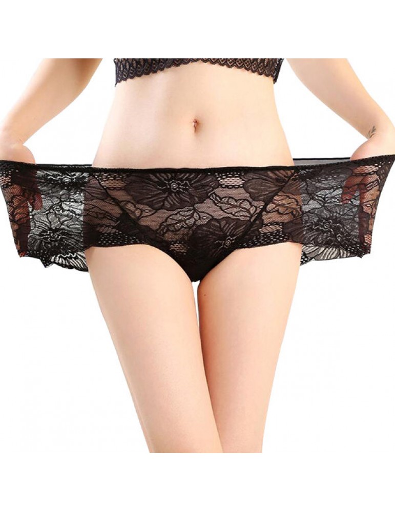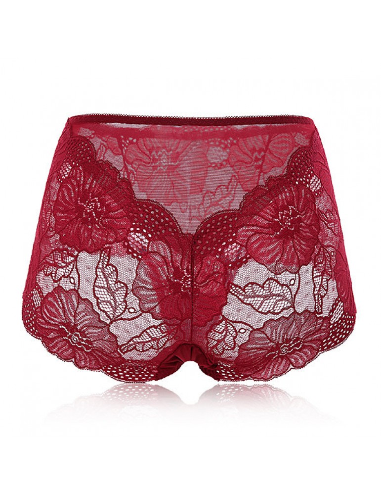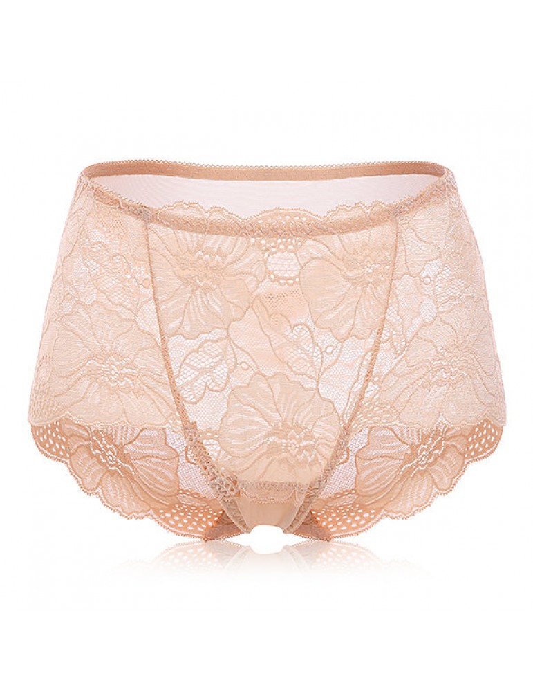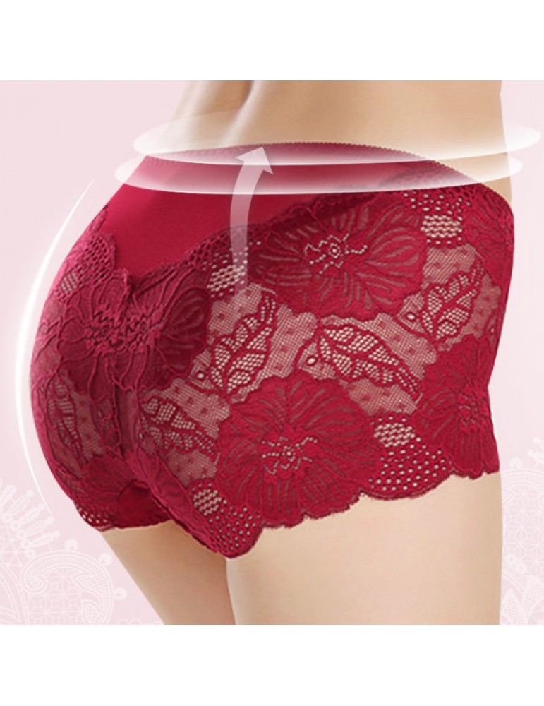 Lace-trim Flounces Hip-lifting Seamless Elastic Mid Waisted Panties