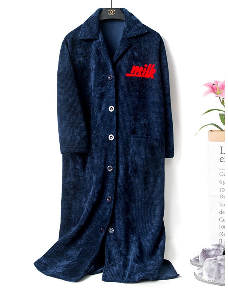 Plus Size Long Pink Robe Thickened Embroidery Front Button Winter Autumn Pajamas