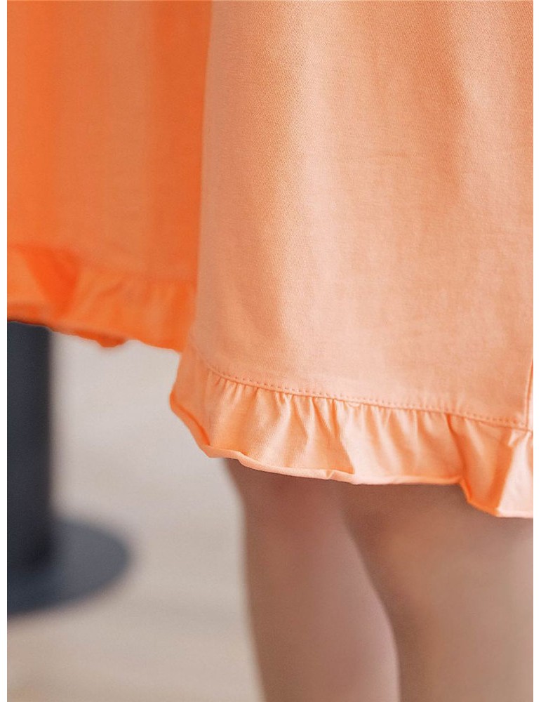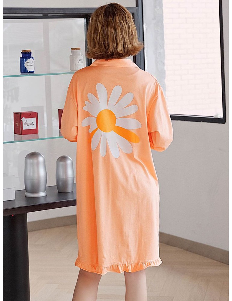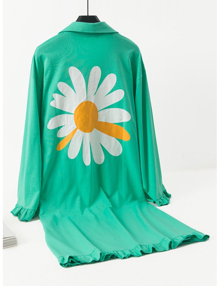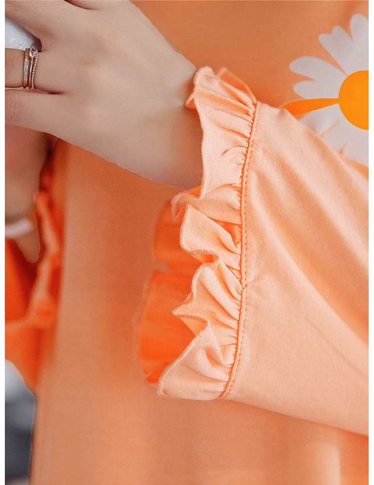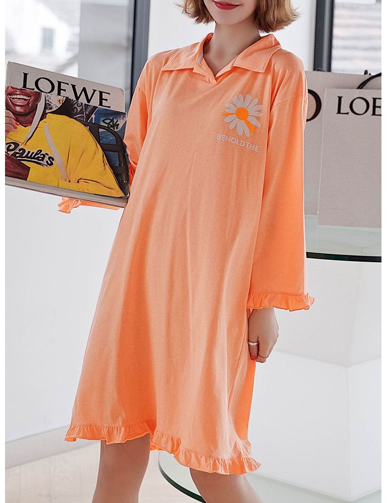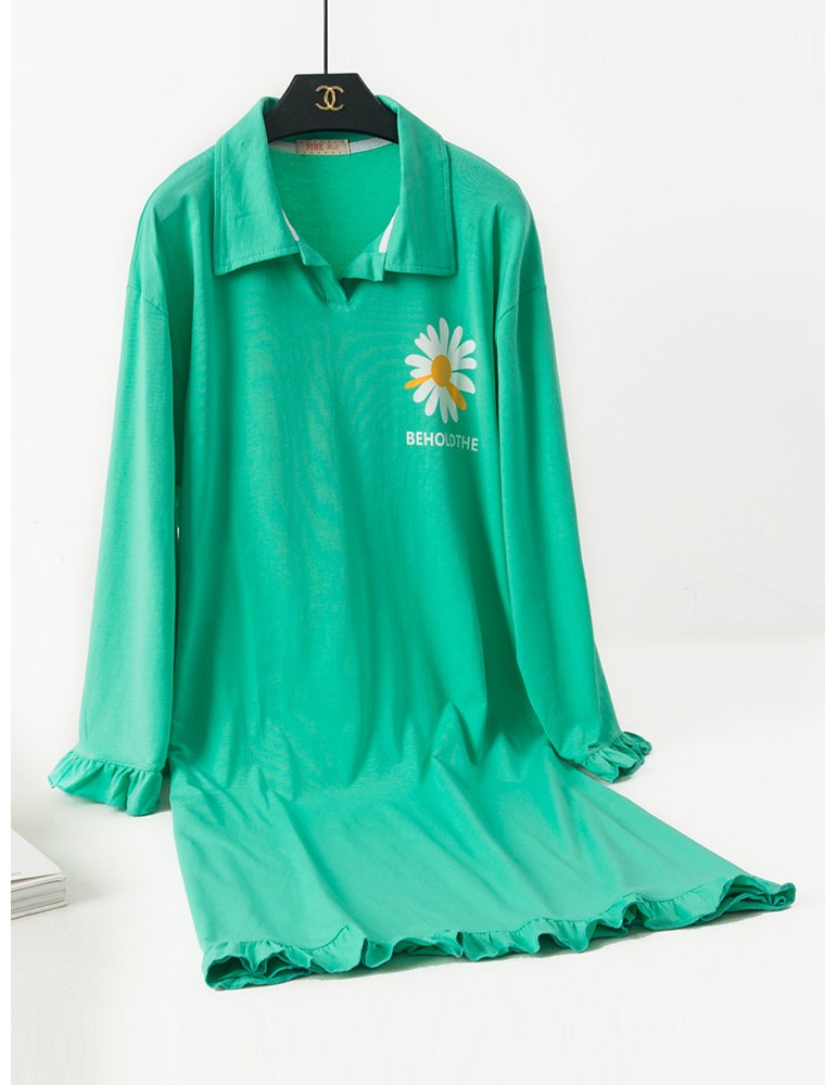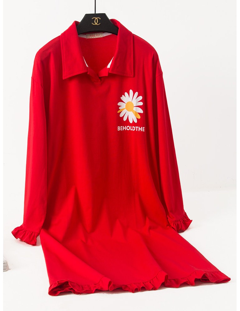 Plus Size Long Sleeves Pajamas Cotton Flounce Sunflowers Print T-Shirt Nightdress