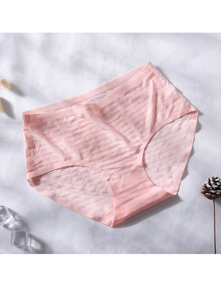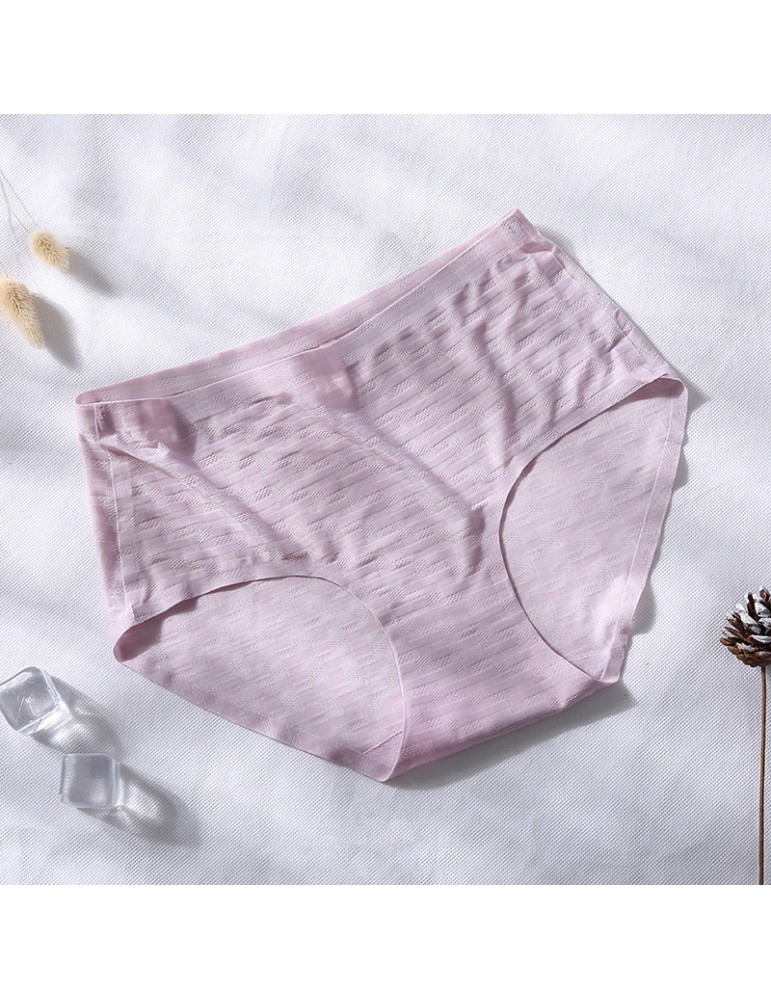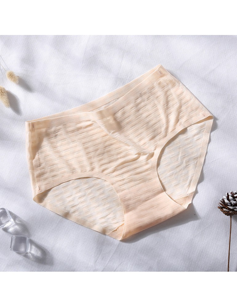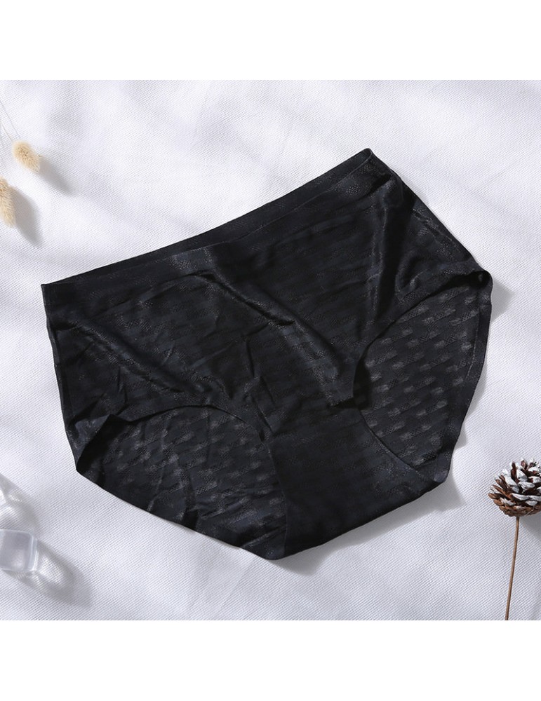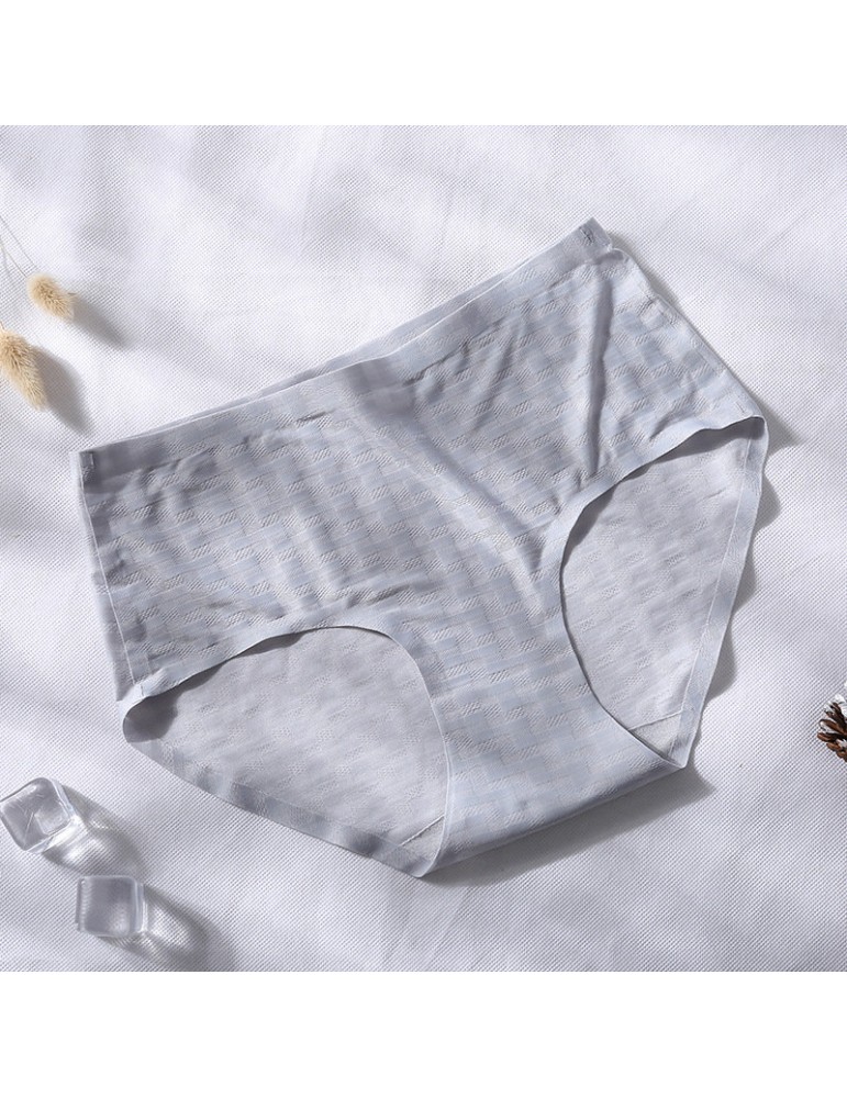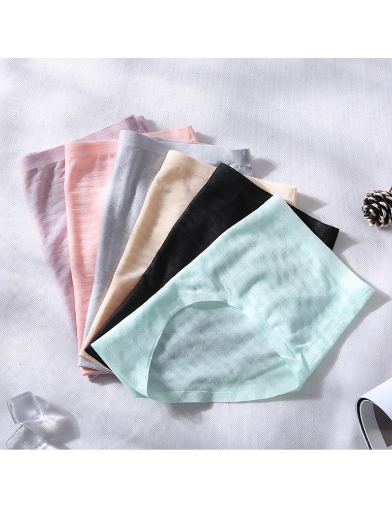 Cotton Crotch Seamless Ice Silk Jacquard Mid Waisted Panties