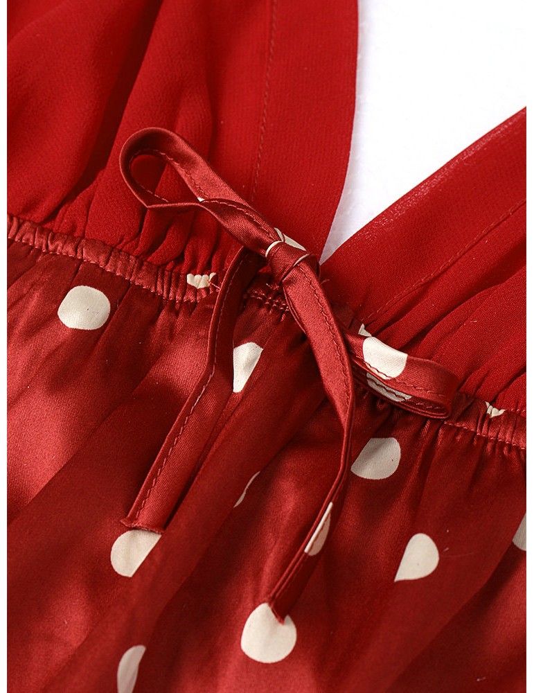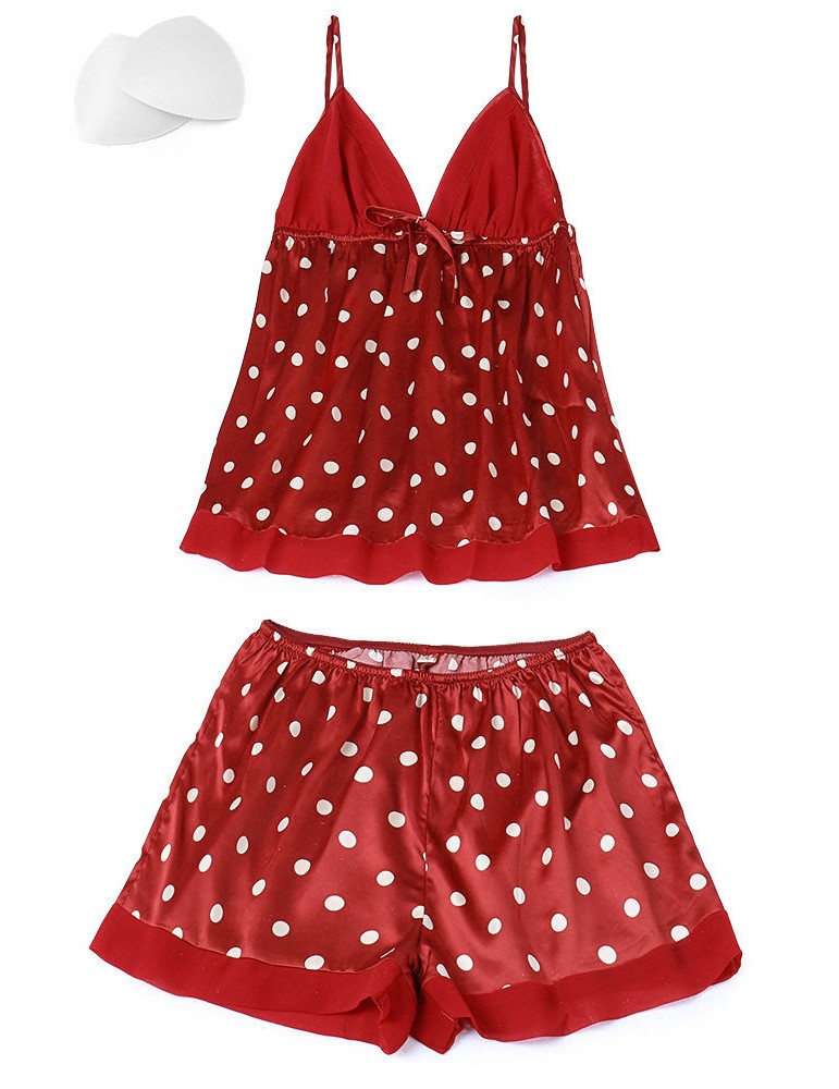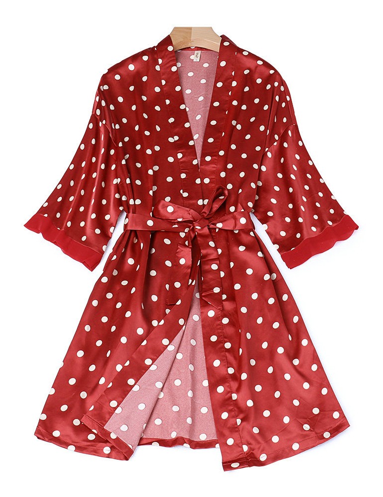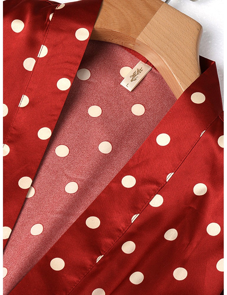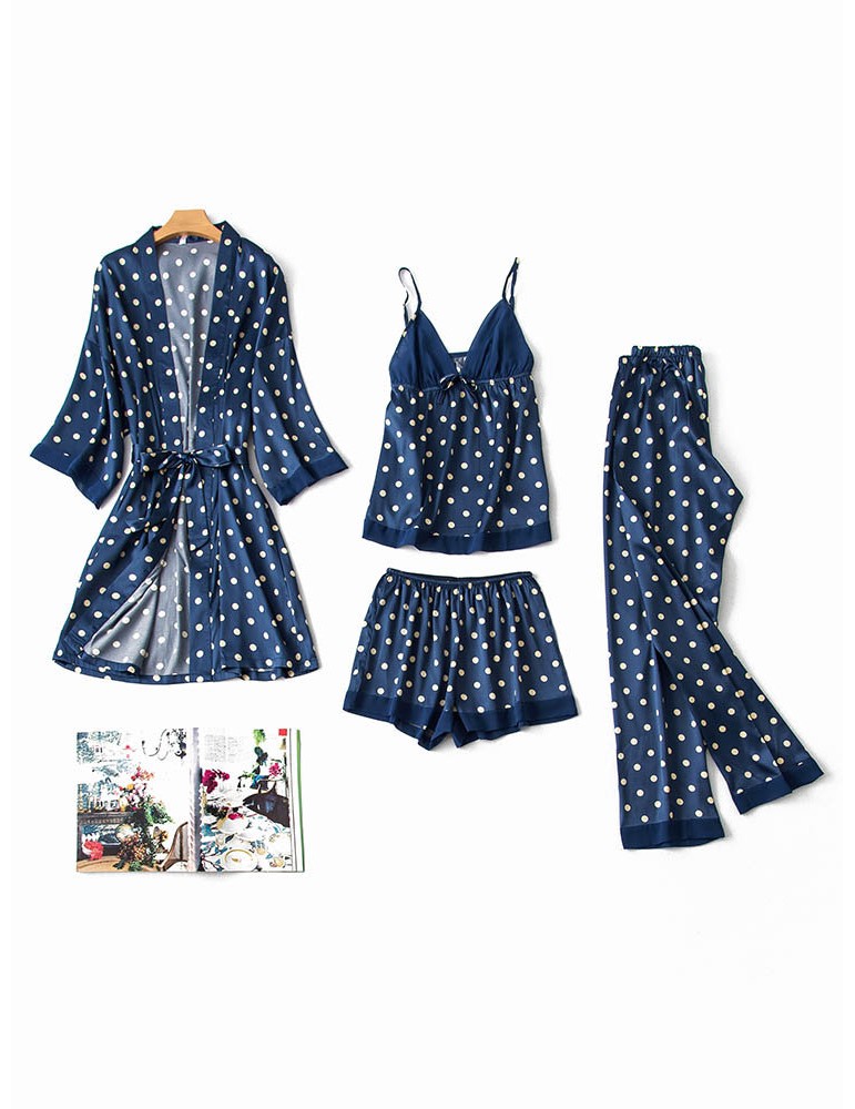Casual Pajamas Silk Polka Dot Four Pieces Sleepwear