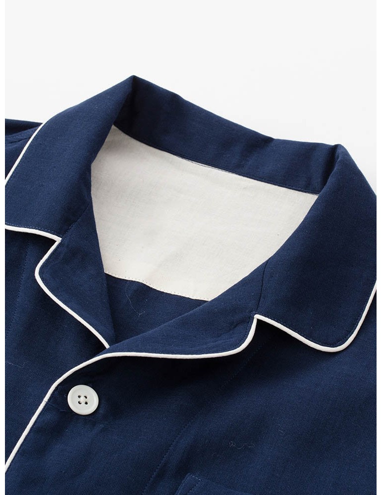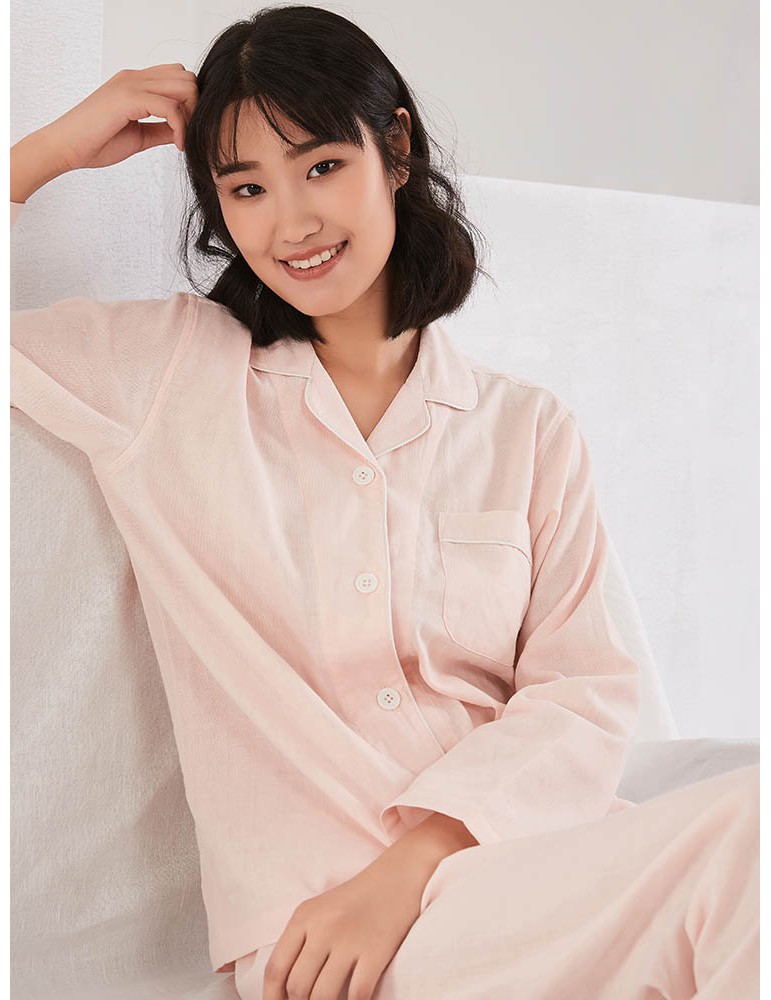 Linen Women Pajamas Sets Cotton Long Home Solid Color Sleepwear