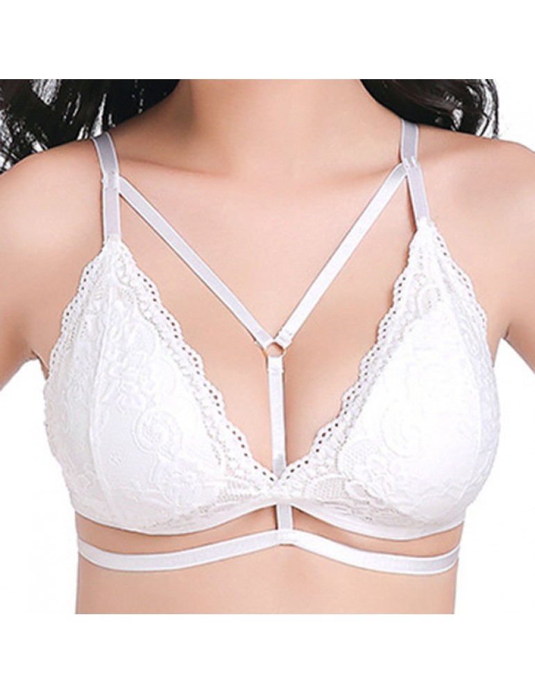 Sexy Hollow Out Backless Lace-trim Wireless Camisole Bras
