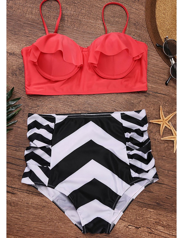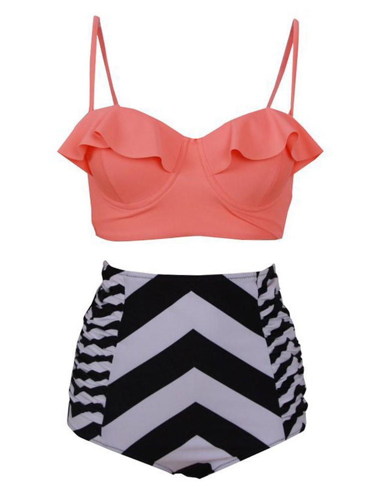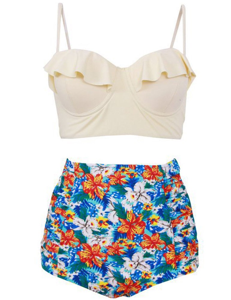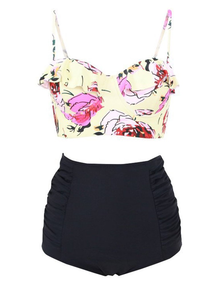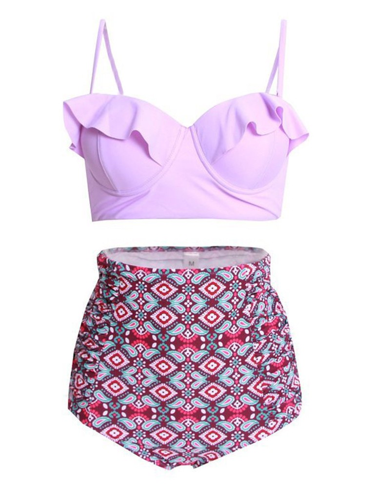 Sexy Push Up Printing Quick-dry High Waist Bikini Set For Women