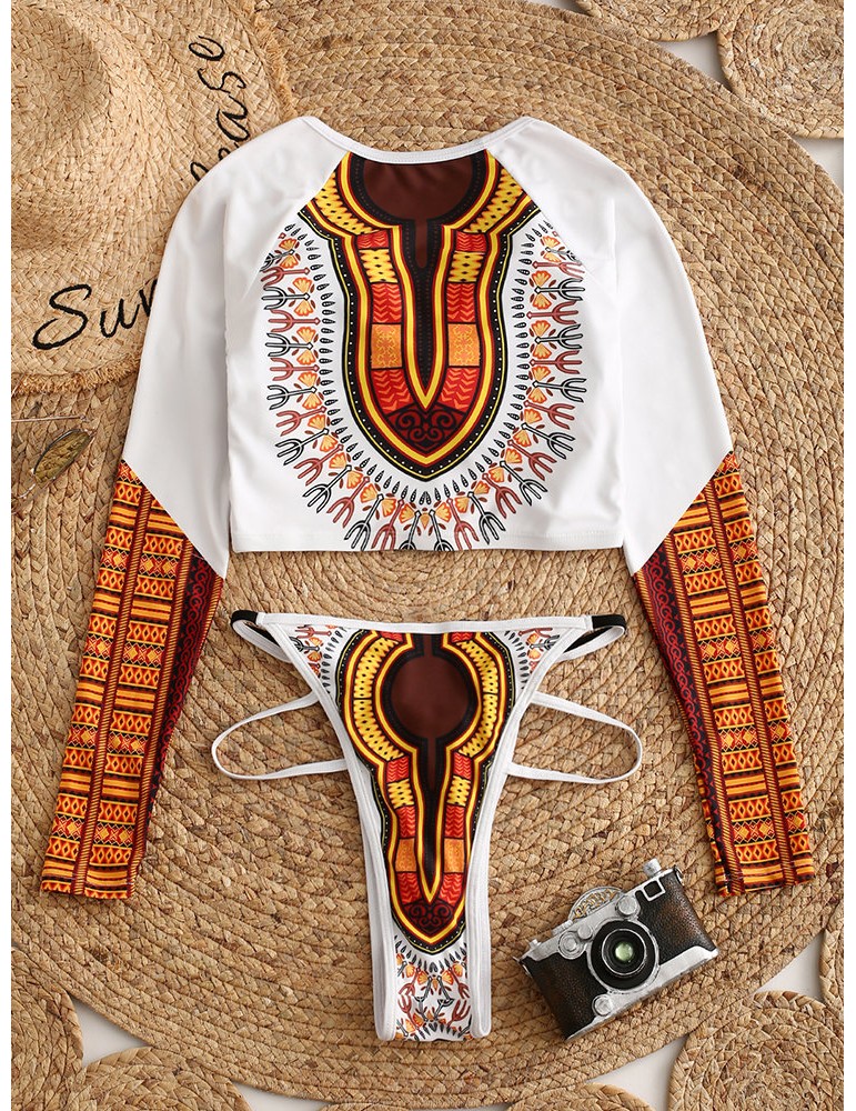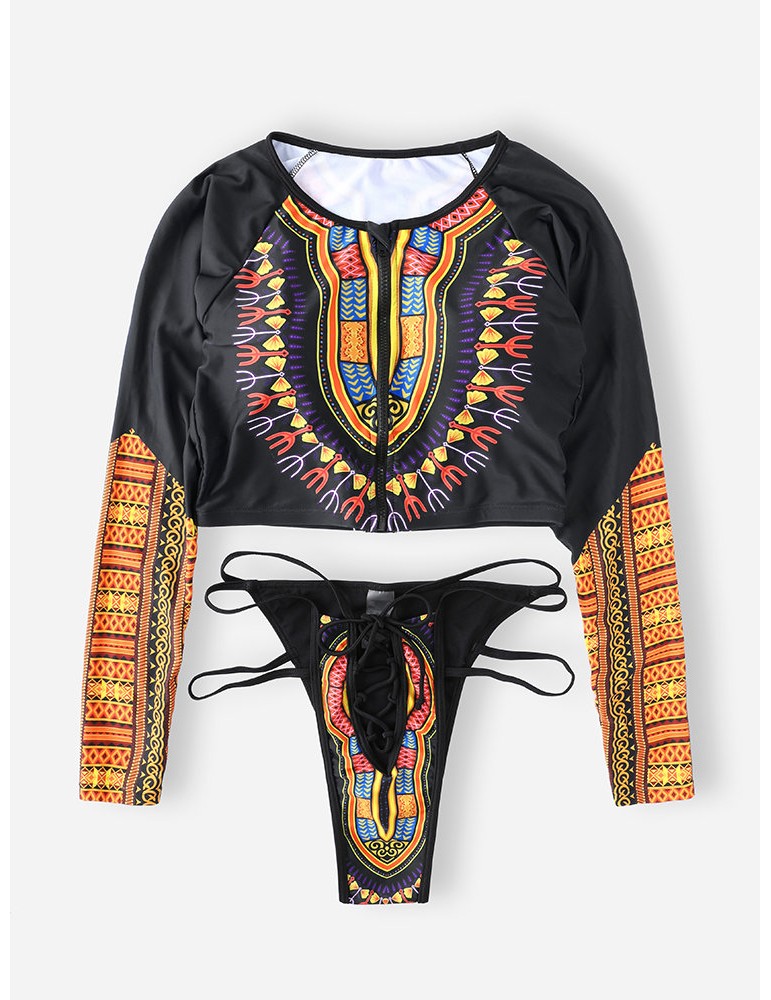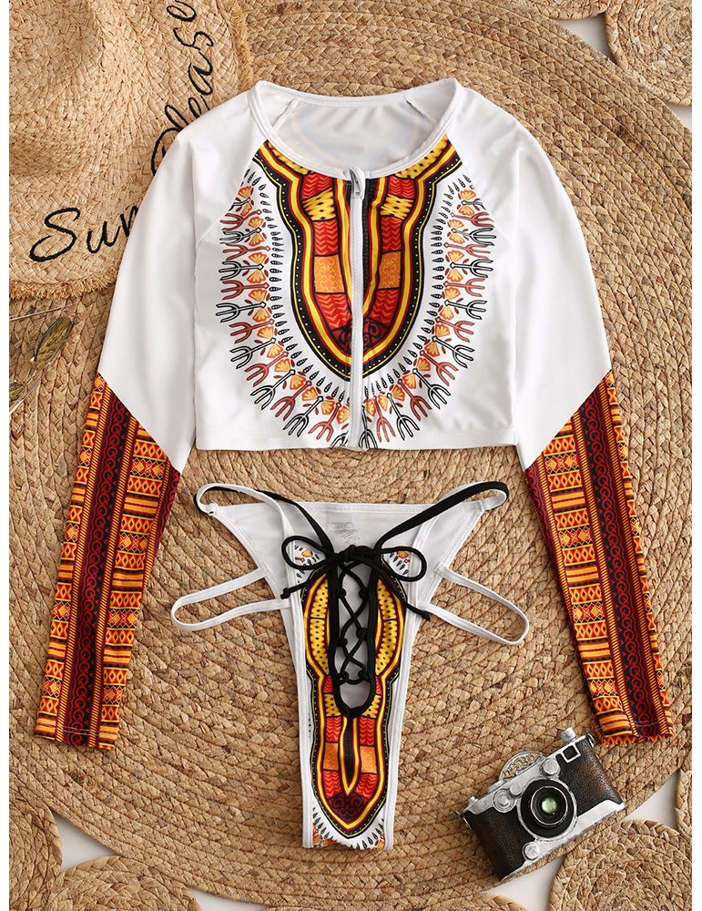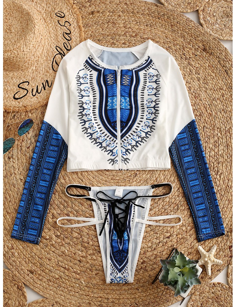 Thong Sexy Indian Swimsuits Bikinis Zip Front Long Sleeves Bandage Swimwear For Women By Newchic